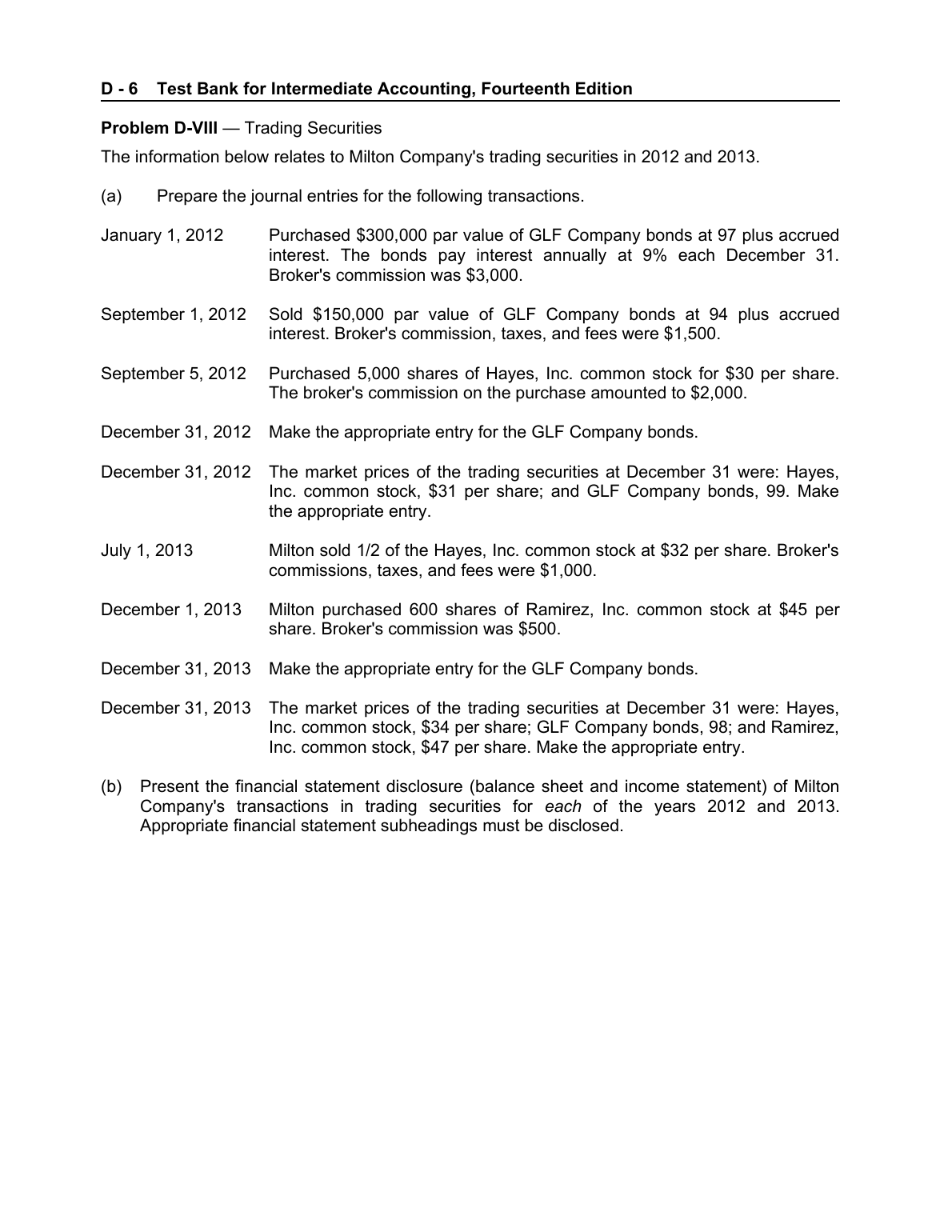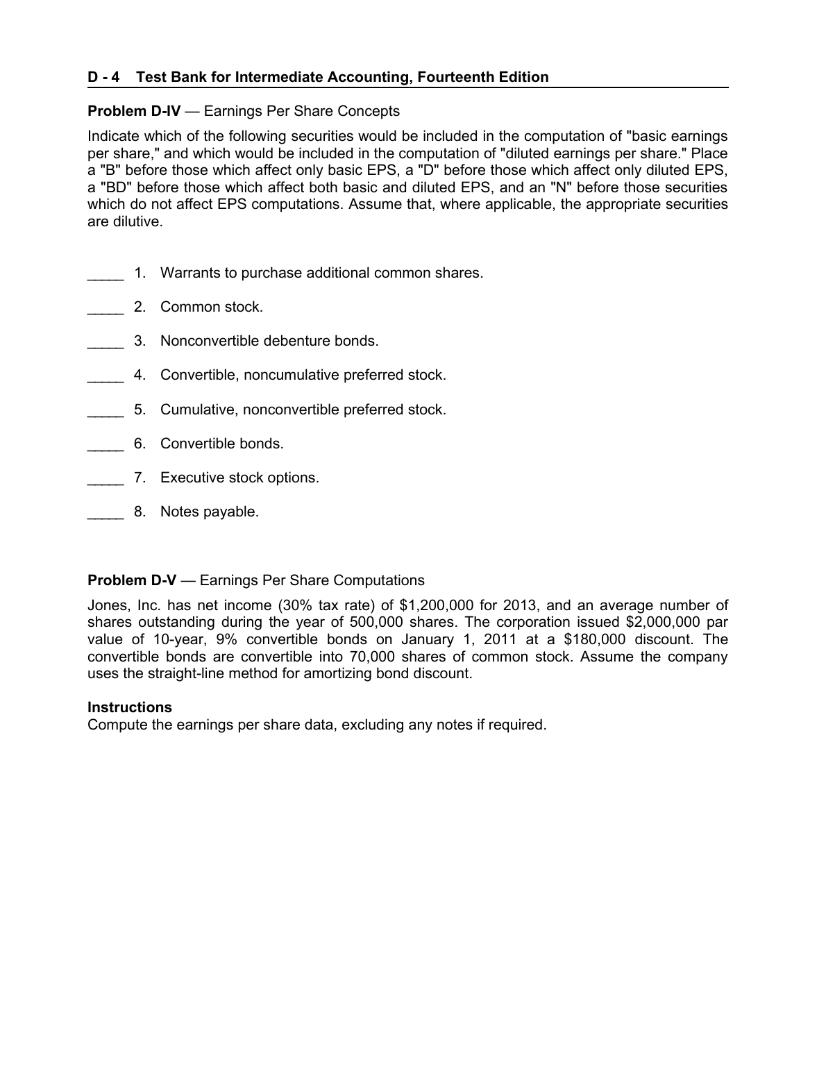 Test Bank for Intermediate Accounting, Fourteenth Edition