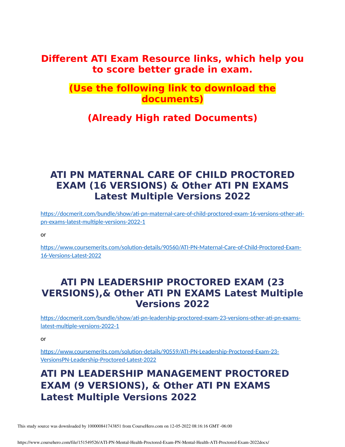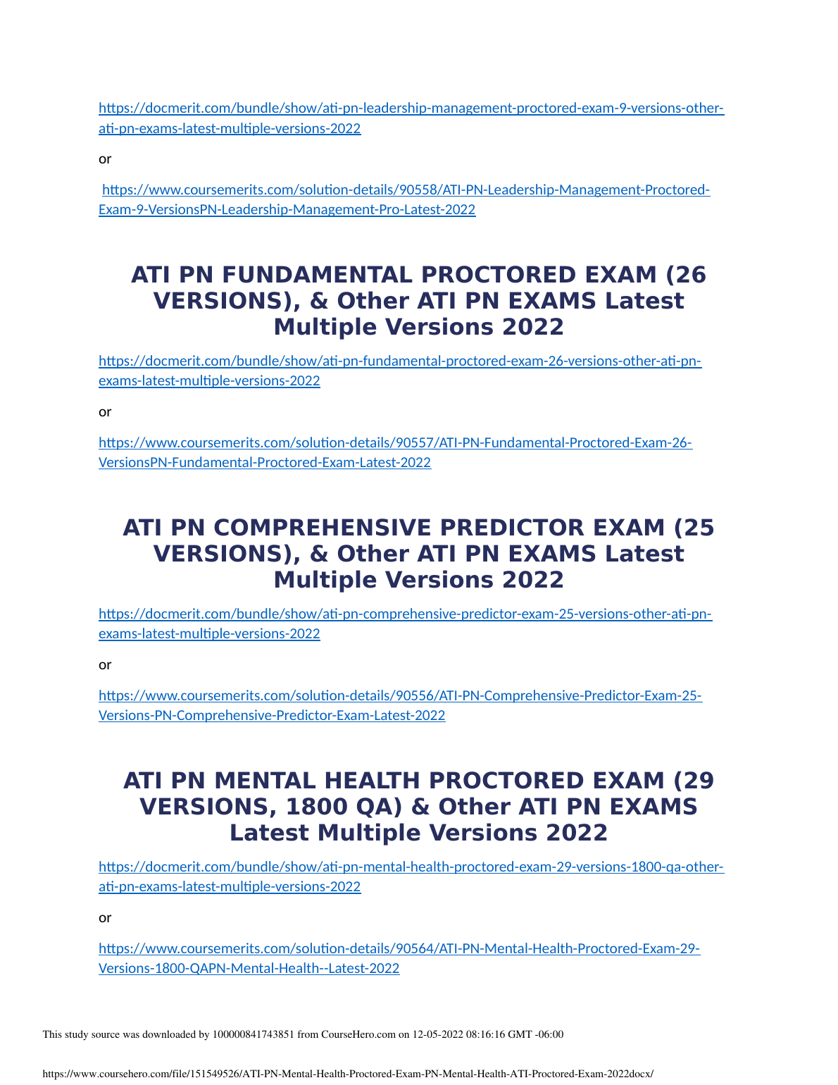 ATI PN Mental Health (Exam solutions, with updated complete resources for 2022/2023 ATI Exams). DOWNLOAD on www.hackedexams.com INSTANTLY.