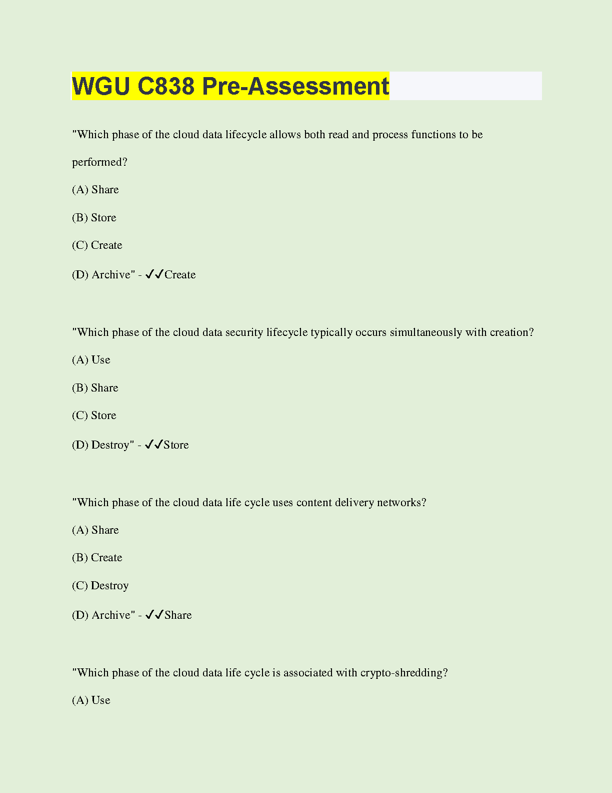 This comprehensive study guide covers all the key concepts in WGU C838, helping you pass your exam on the first attempt. This resource includes practice questions and answers to prepare you for the real exam. Master cloud data lifecycles and security measures with ease and avoid resits!