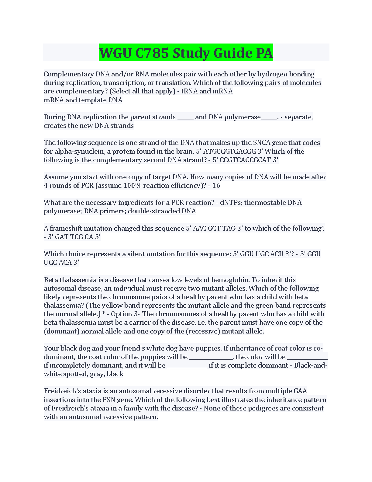 Conquer your WGU C785 exam with this comprehensive study guide, meticulously crafted for the 2024-2025 academic year. This resource covers key concepts, including DNA replication, PCR, mutations, and inheritance patterns. Master the material and avoid resits – pass your exam with confidence!
