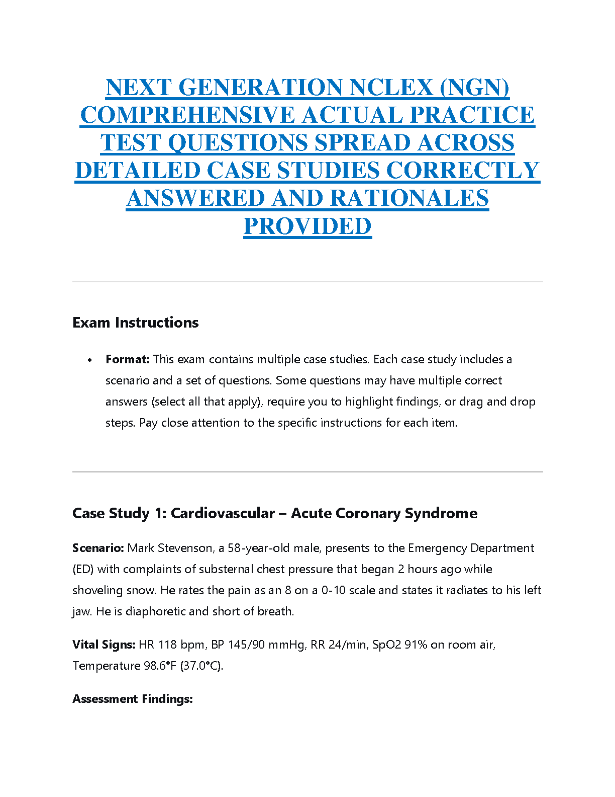 HackedExams is the website to download all resources for students who want to pass their exams on their first attempt. Our website offers all exam materials, including practice questions with answers, test banks, study guides, notes, summaries, and more for nursing, computer science, biology, psychology, law, and others. With resources from popular exam bodies like ATI, AQA, OCR, Edexcel, Comptia, Azure, and more, you'll easily find everything you need to get certified. Avoid resitting exams; trust in HackedExams.com to give you the resources to pass on your first attempt. Get access to exams from 2019 to 2023 and start your path to success today. "Avoid resits, get certified within days, and pass your exams on your first attempt."