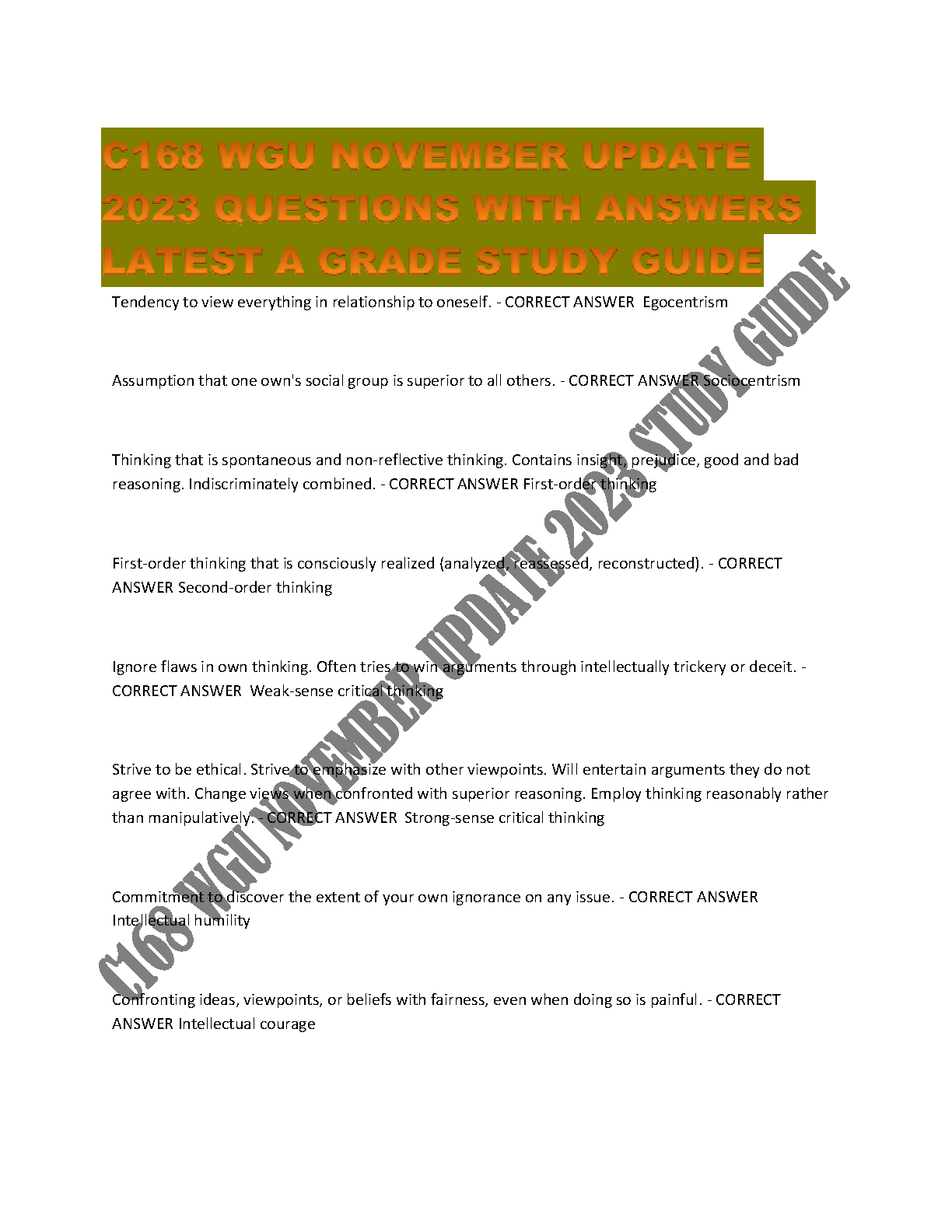 WGU C168 November 2023 Update: Questions & Answers Study Guide by [Author Names]