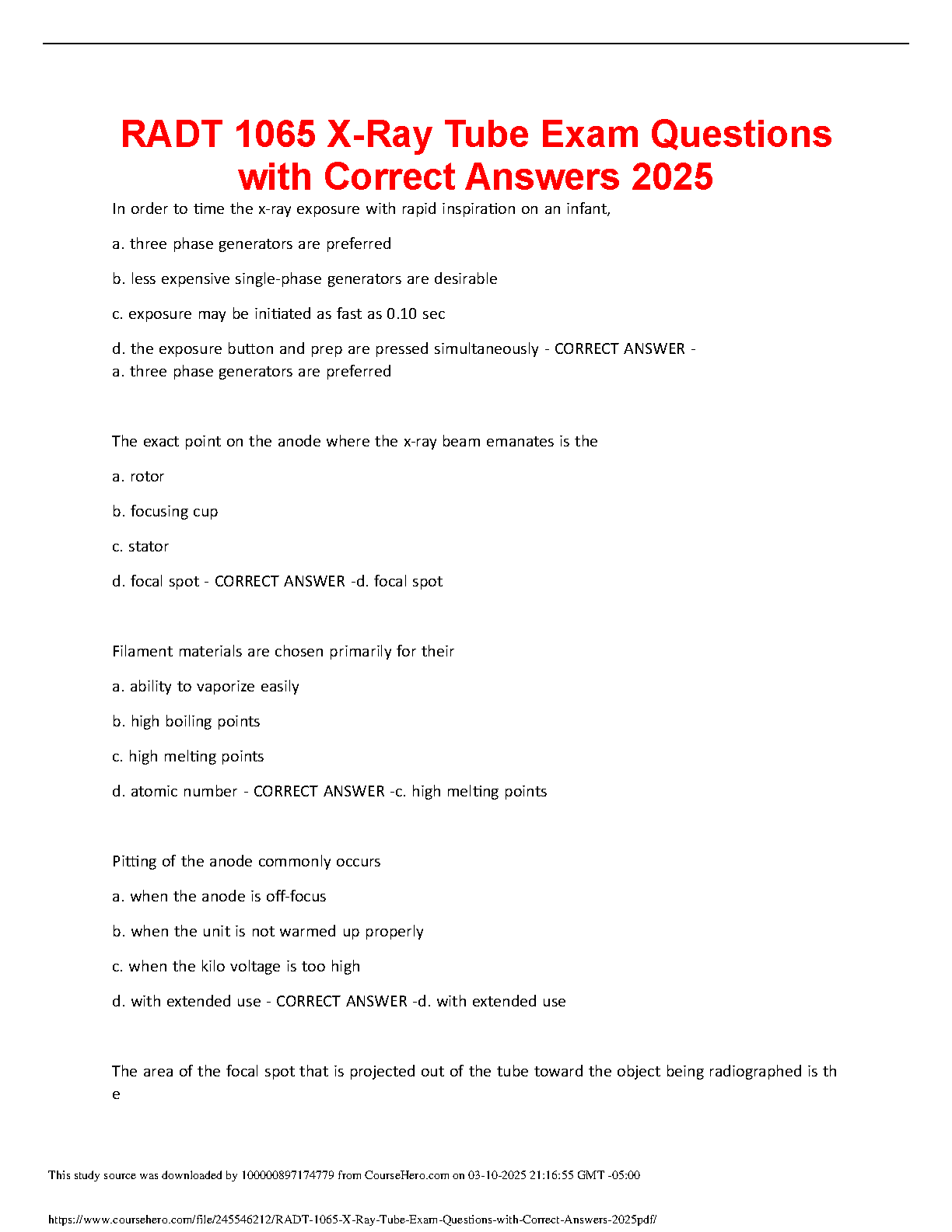 RADT 1065 X-Ray Tube Exam Questions and Answers 2025: Ace Your Exam!