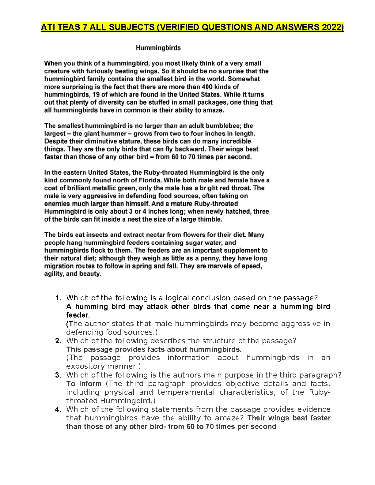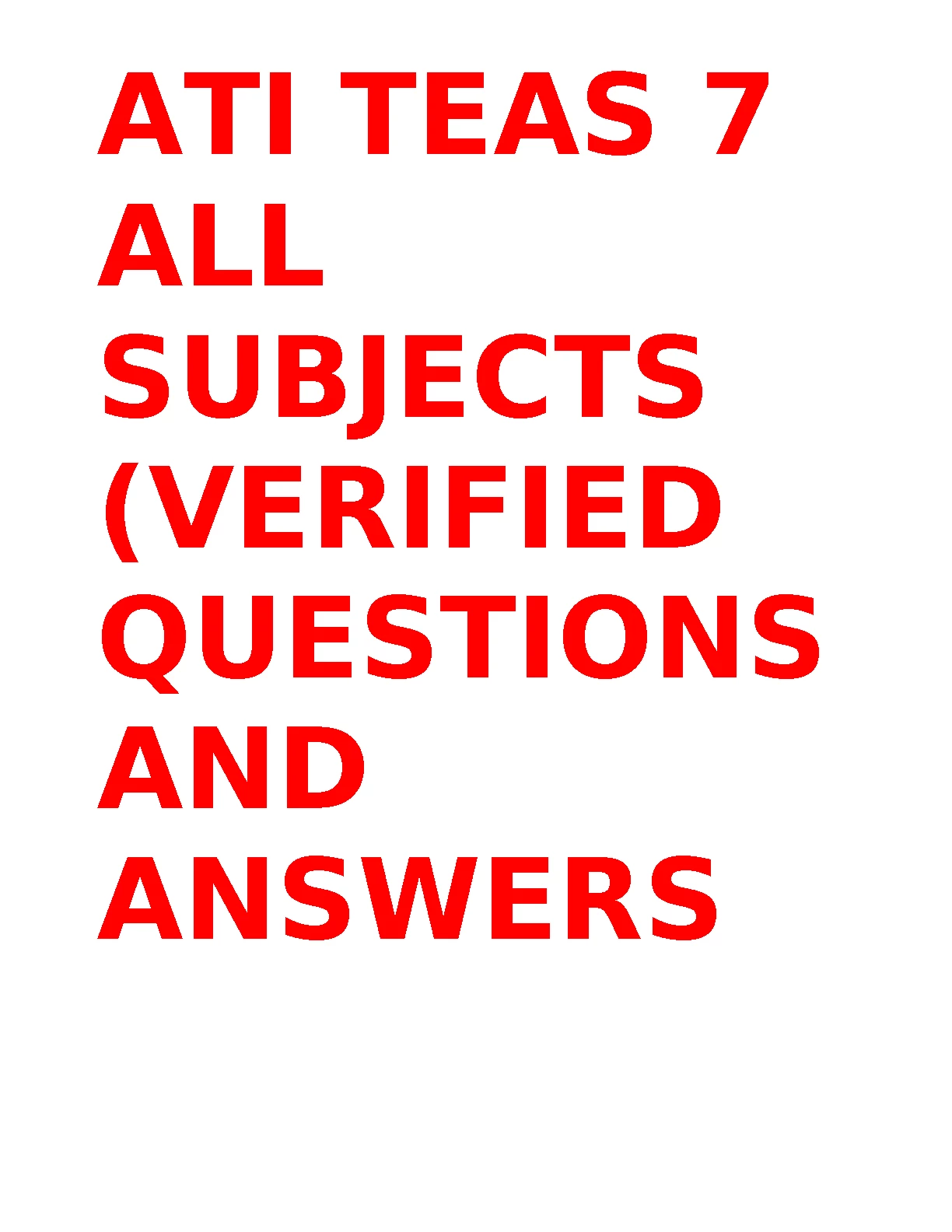 ATI TEAS 7: All Subjects Exam Prep - Verified Questions and Answers (2024-2025 Edition)