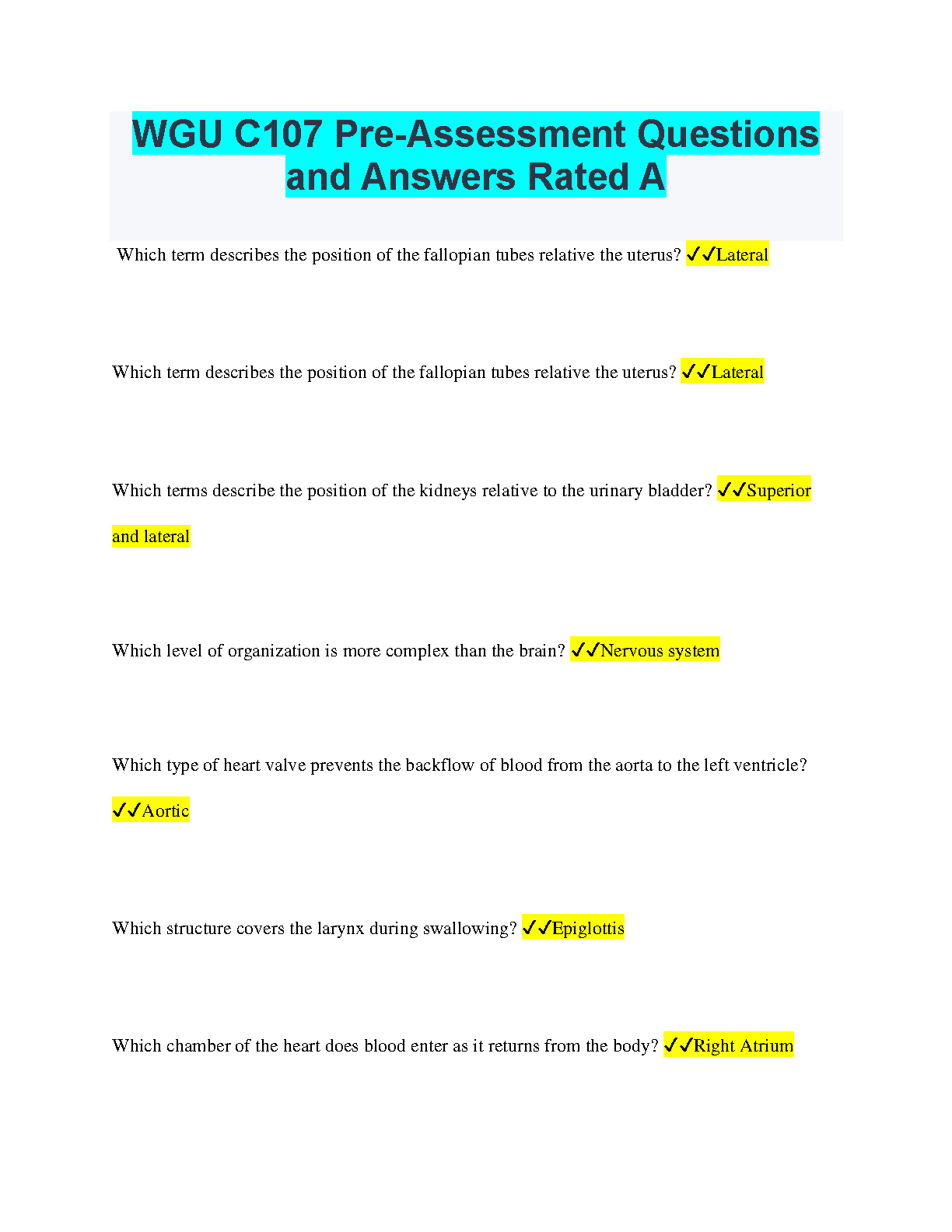 Ace your WGU C107 exam on the first attempt with this comprehensive pre-assessment guide. This resource contains questions and answers covering key concepts to help you avoid resits and master the material. Ideal for 2024/2025 academic year students.