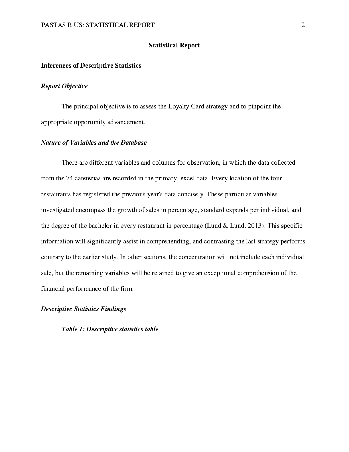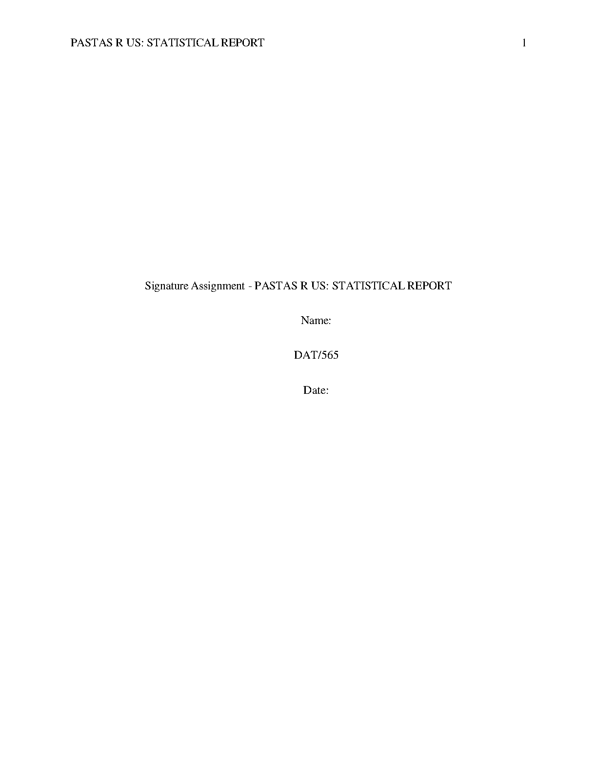 PASTAS R US: Statistical Report - DAT/565 Assignment