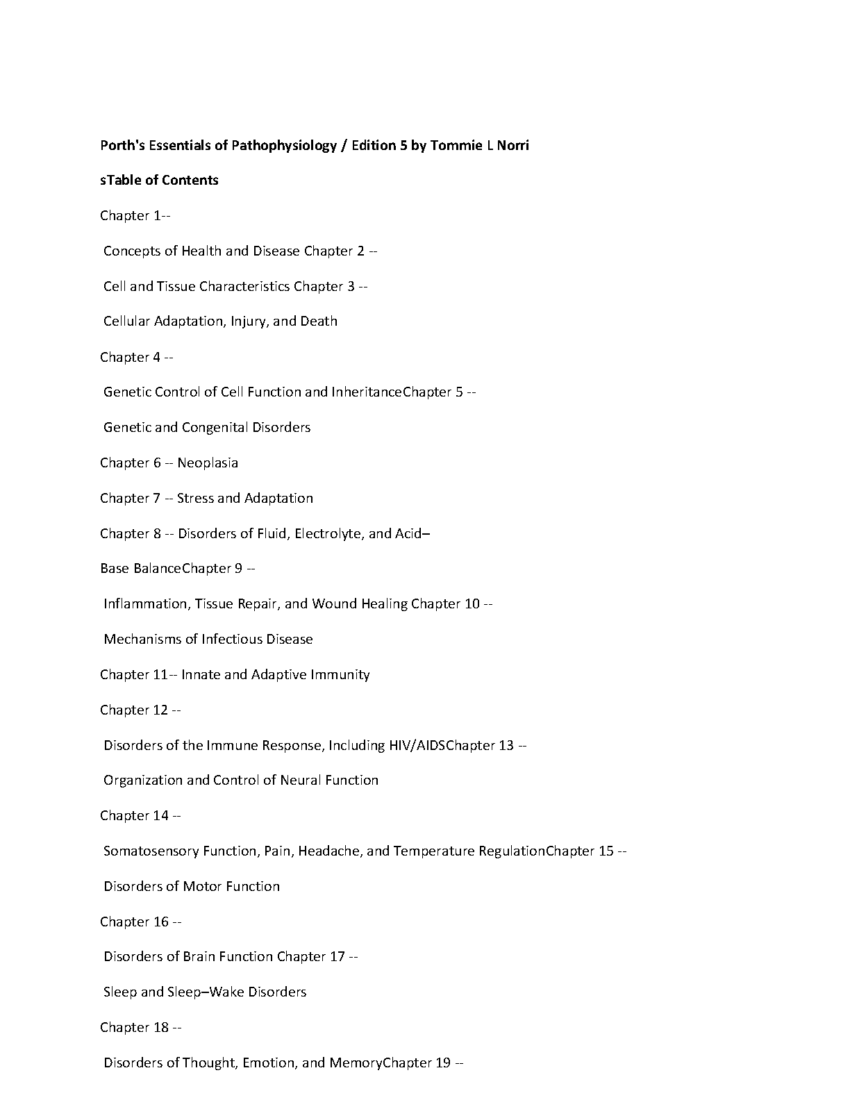 Porth's Essentials of Pathophysiology, 5th Edition Test Bank by Tommie L. Norris: Ace Your Exams!