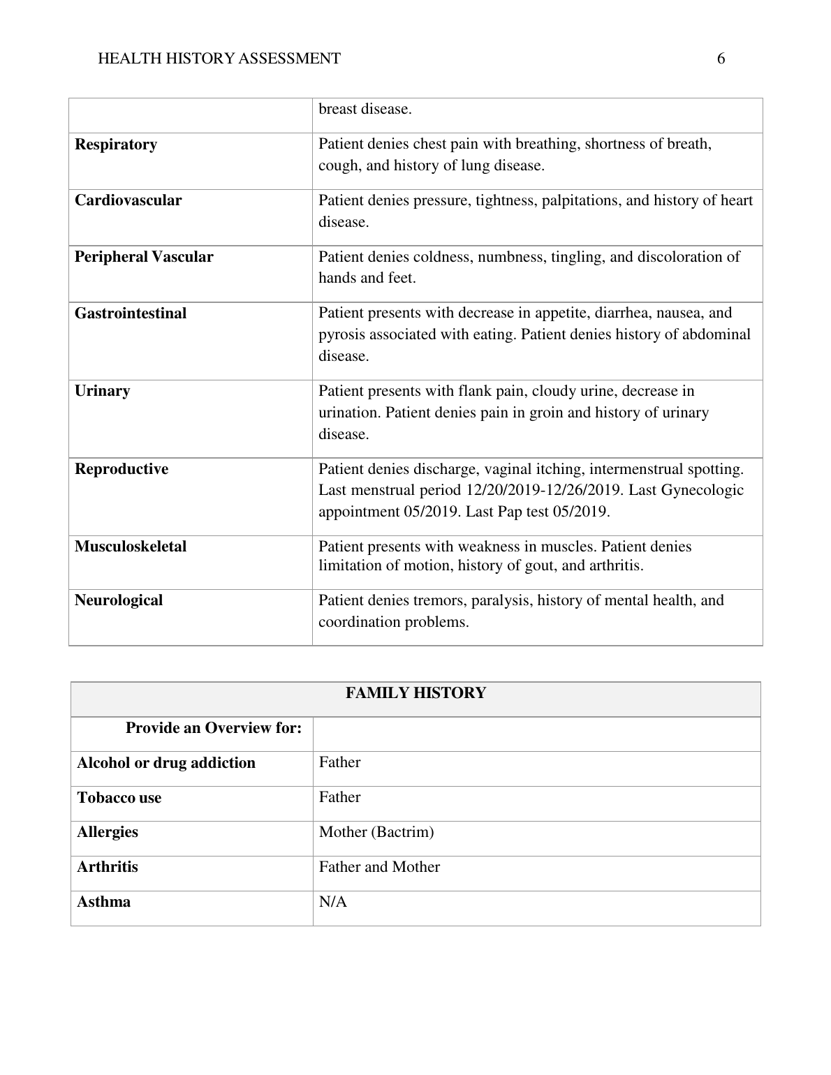 RUA Reflection of The Health History Chamberlain College of Nursing NR302: Health Assessment I