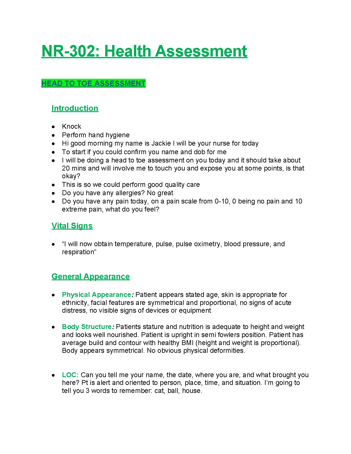 NR-302: Health Assessment HEAD TO TOE ASSESSMENT NEWEST UPDATE FOR 2023/2024