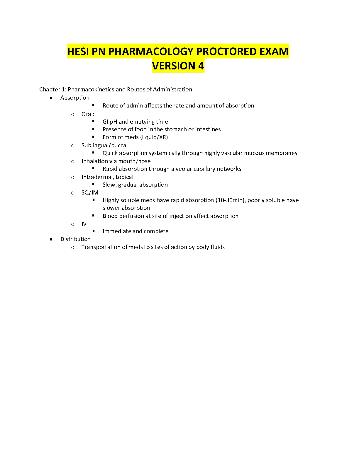 HESI PN Pharmacology Proctored Exam: Version 4 Study Guide by Unknown Author