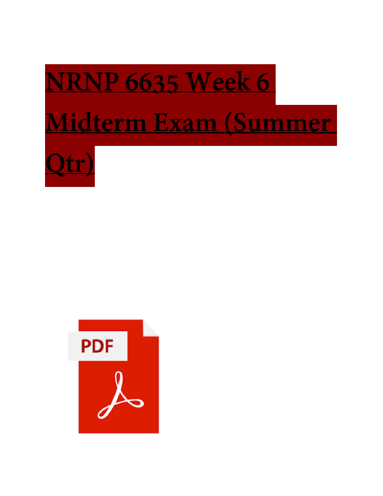 Conquer your NRNP 6635 Week 6 Midterm Exam with this comprehensive study guide. Designed for the Summer Quarter, this resource helps you master key concepts and ace your exam on the first try. Avoid costly resits and achieve your academic goals.
