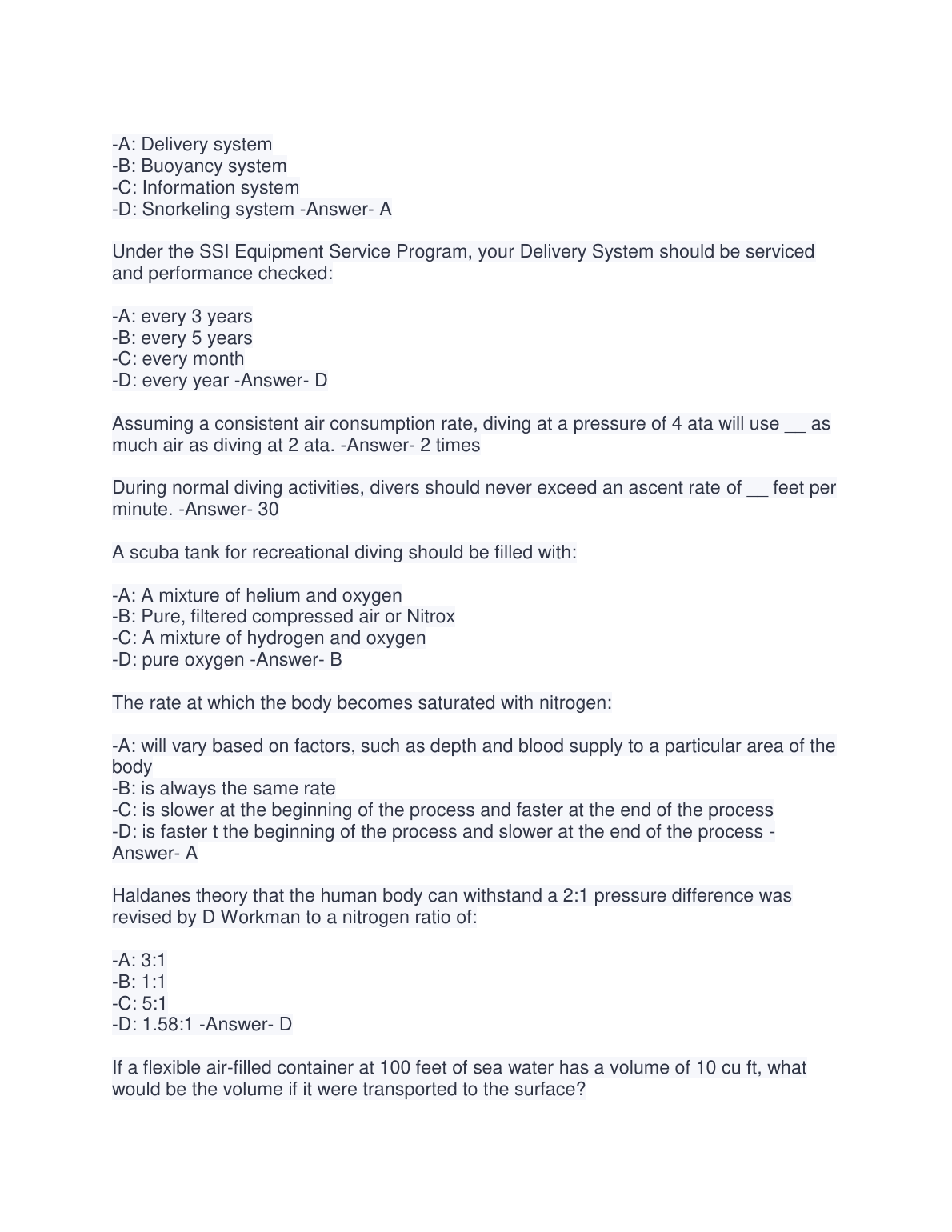 SSI Open Water Diver Final Exam 2022 Graded A+(Actual test 100% verified). DOWNLOAD ON www.hackedexams.com INSTANTLY.