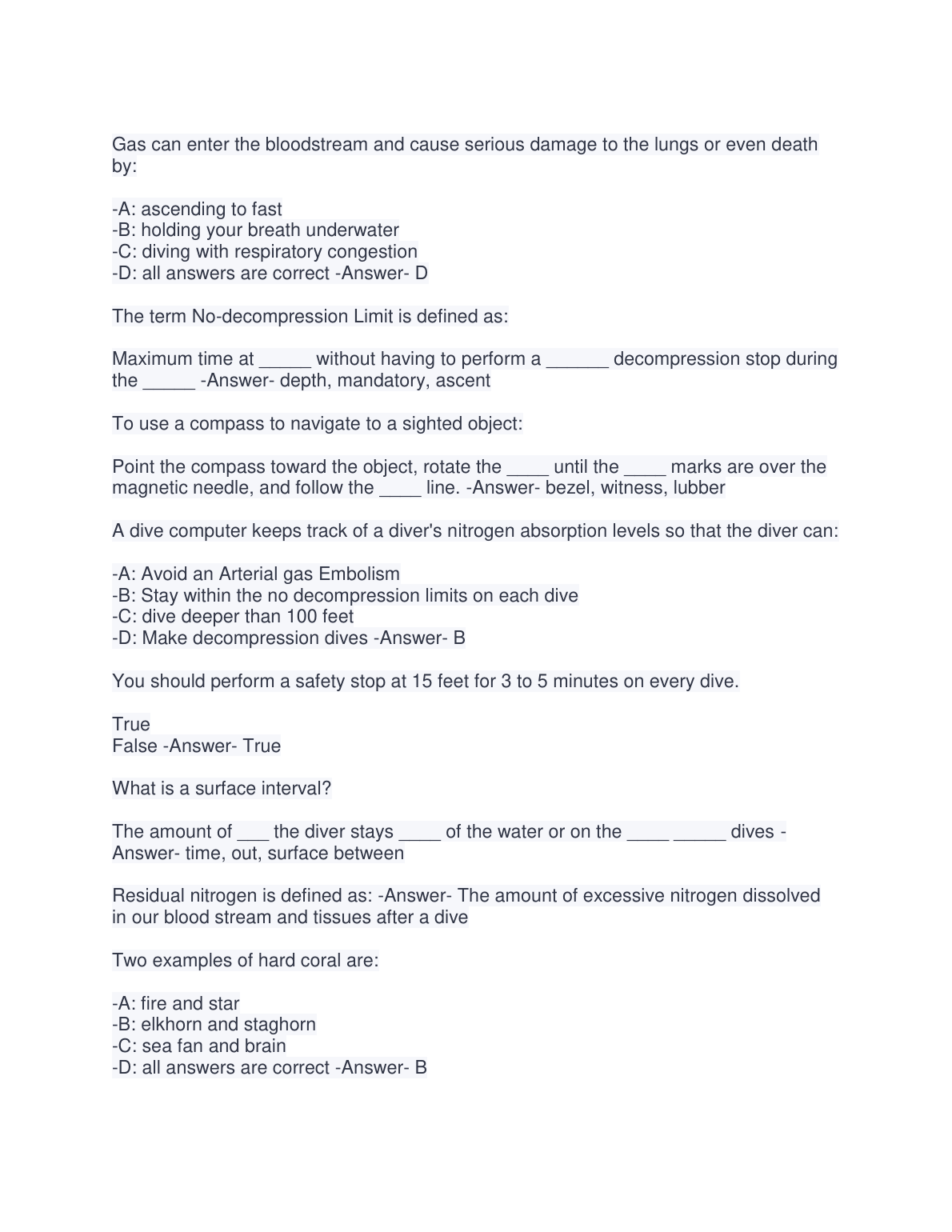 SSI Open Water Diver Final Exam 2022 Graded A+(Actual test 100% verified)
