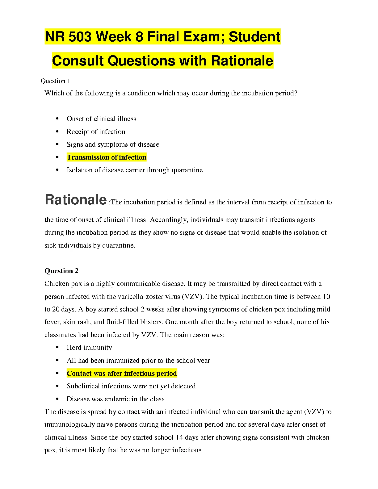 NR 503 Week 8 Final Exam; Student Consult Questions with Rationale NEW SOLUTION 2023