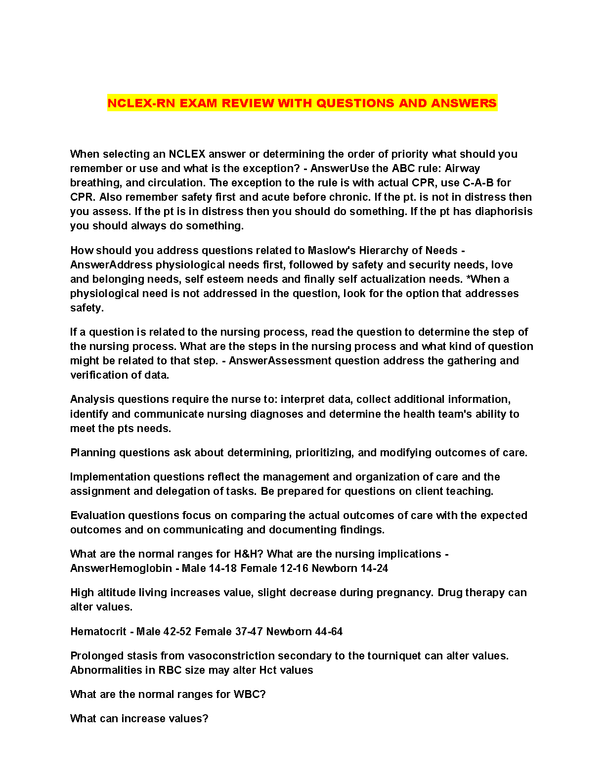 NCLEX-RN Exam Review with Questions and Answers 2024/2025 Edition: Ace Your Exams on the First Attempt!