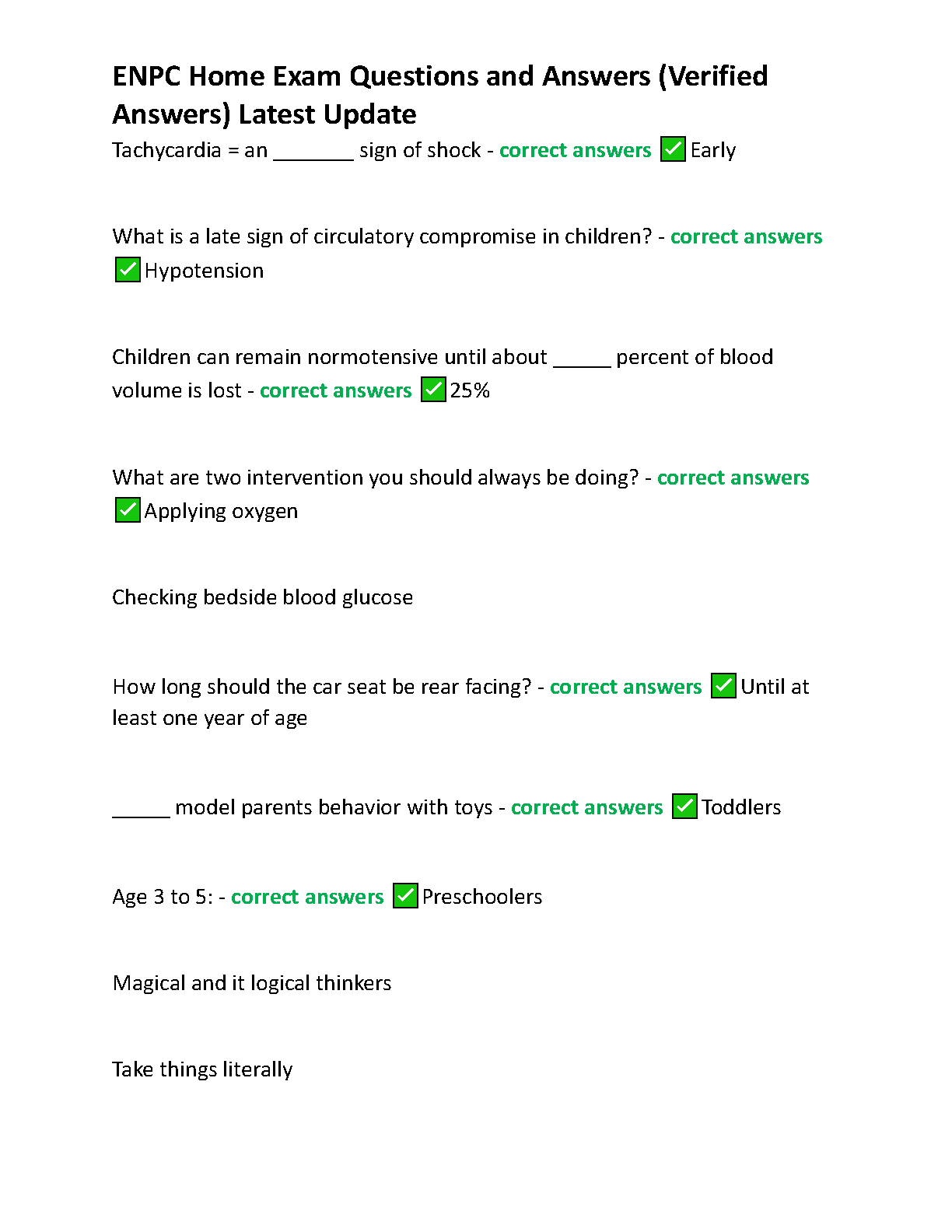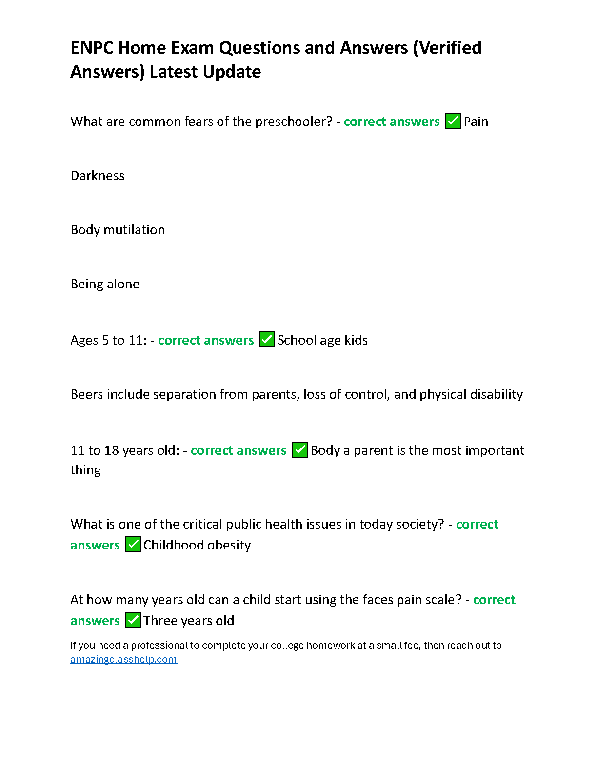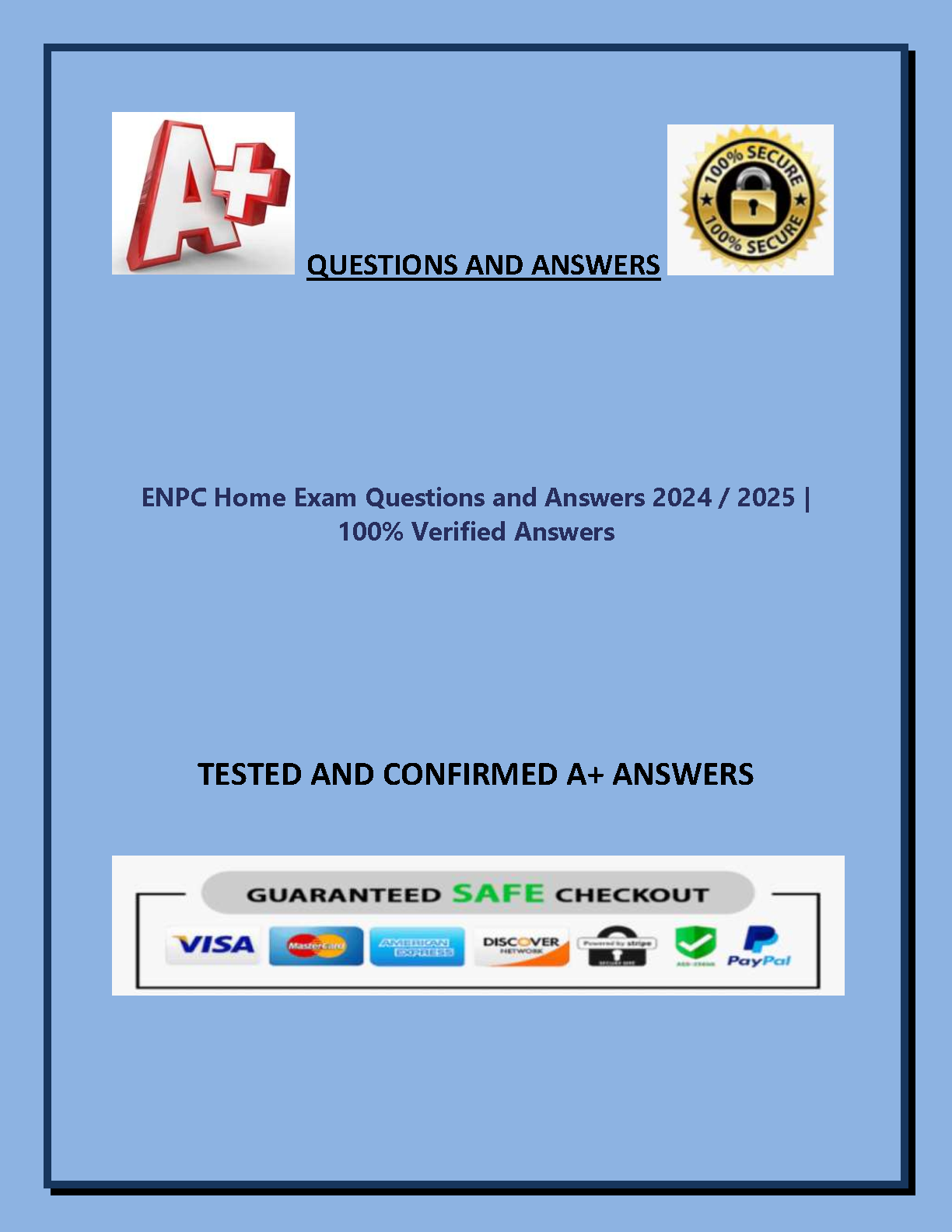 ENPC Home Exam Questions and Answers 2024/2025: Pass Your Exam on the First Attempt