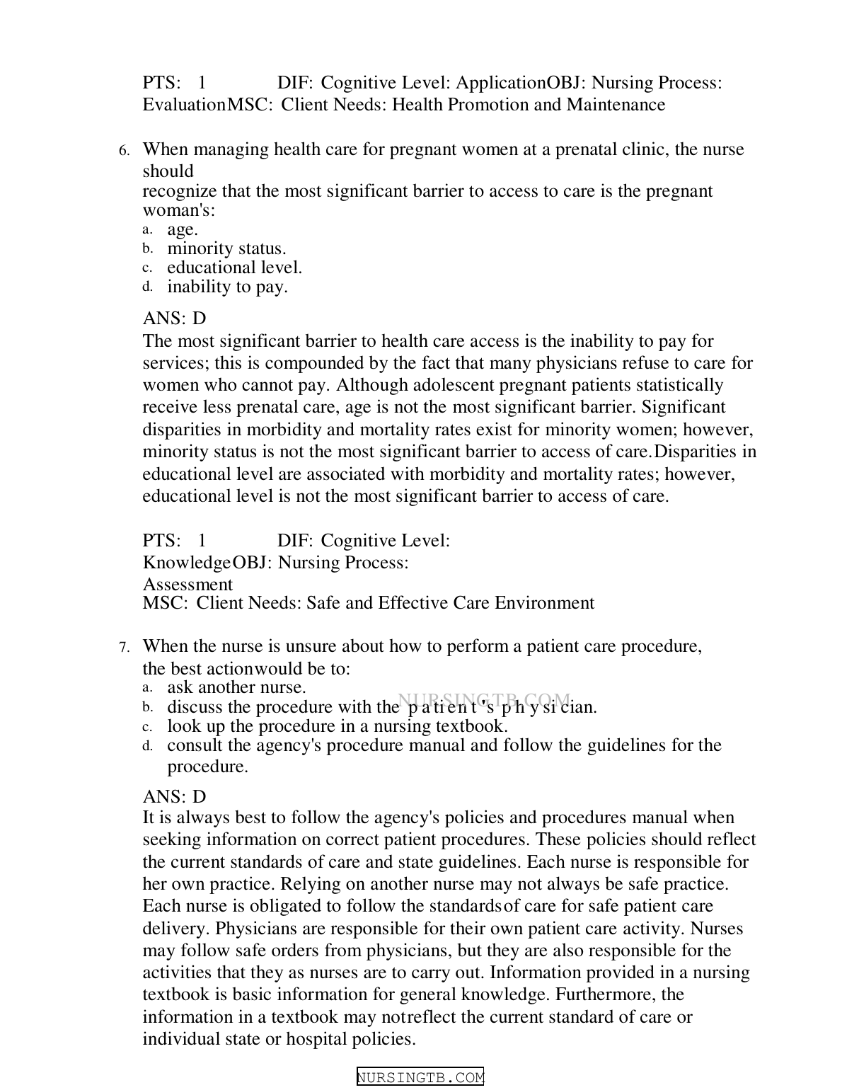 NURSING 100 MATERNAL CHILD NURSING CARE 6TH EDITION PERRY TEST BANK CHAPTER 1-49