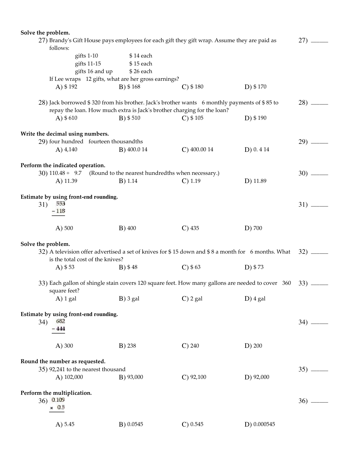Business Mathematics, 14e Gary Clendenen, Stanley Salzman (Test Bank)
