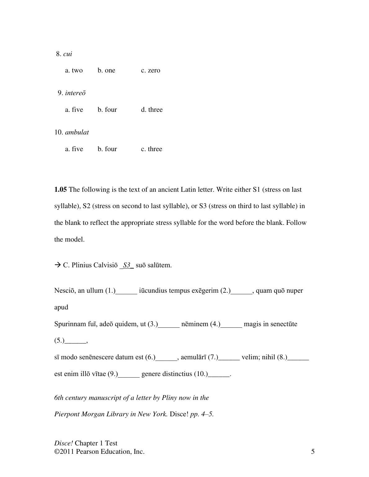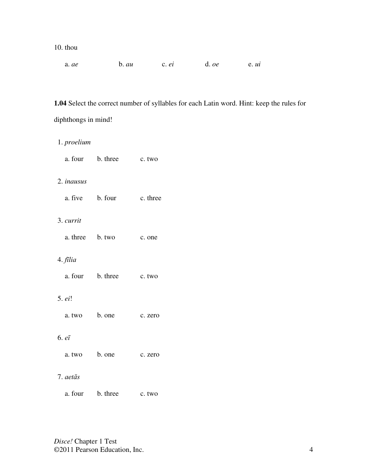 An Introductory Latin Course 1e (Volume 1) Kenneth Kitchell, Thomas Sienkewicz) (Test Bank, Answer at the end of each Chapter)