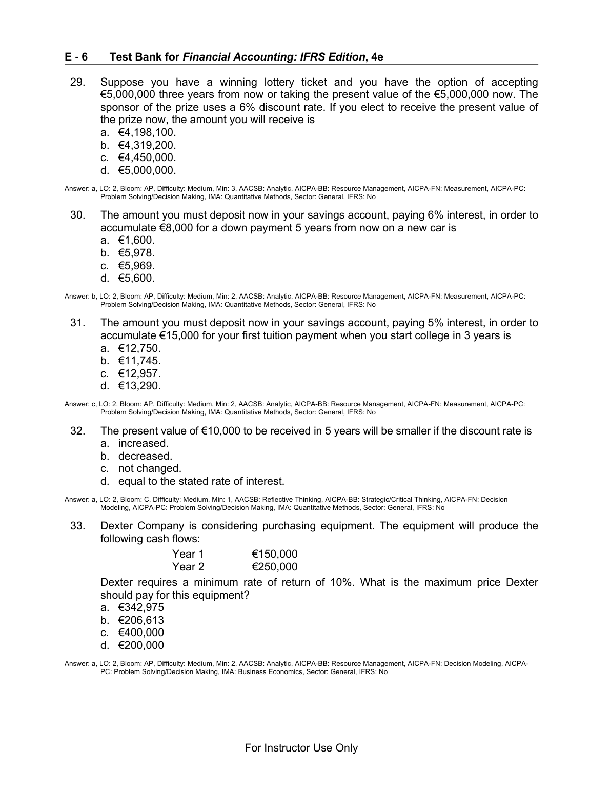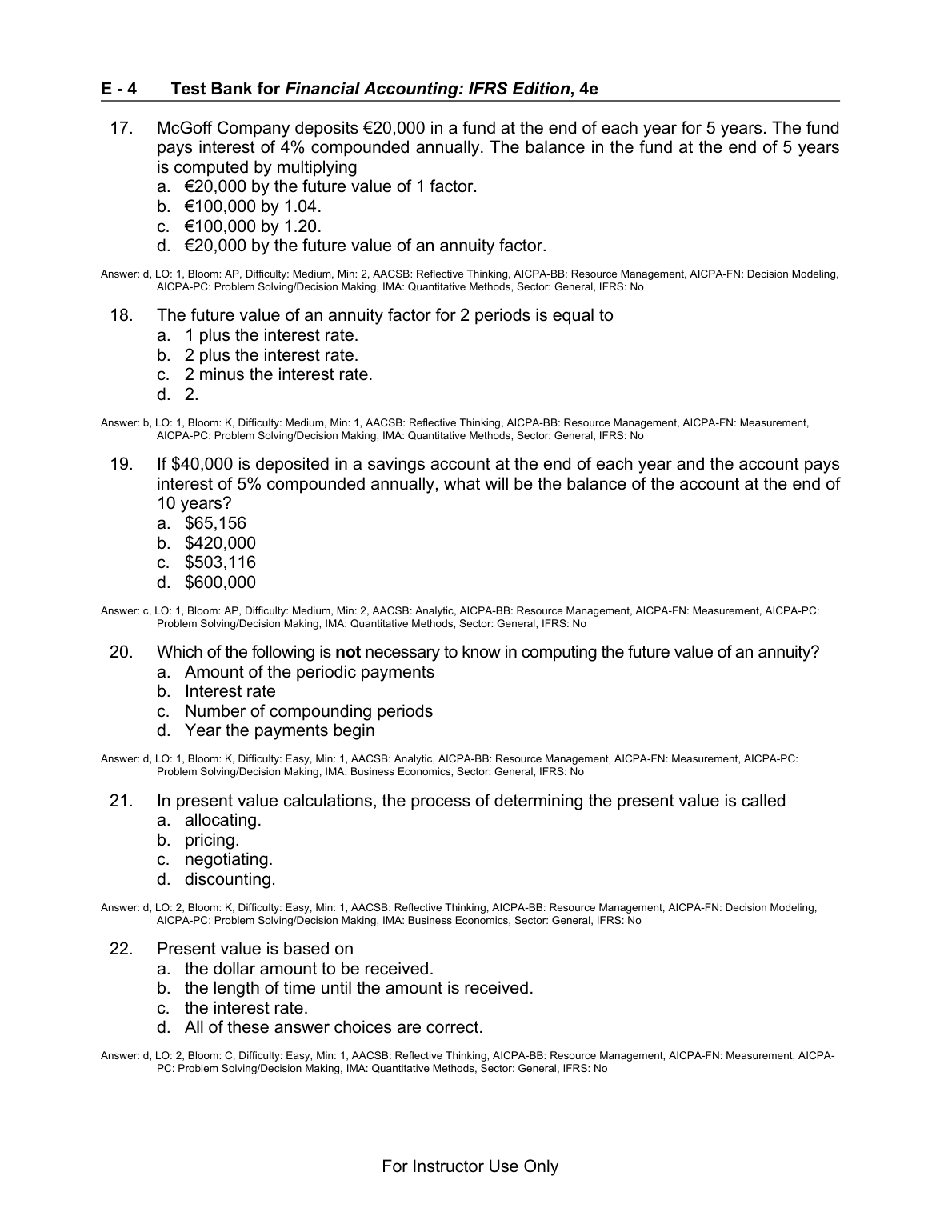 Weygandt's TIME VALUE OF MONEY 4e TEST BANK