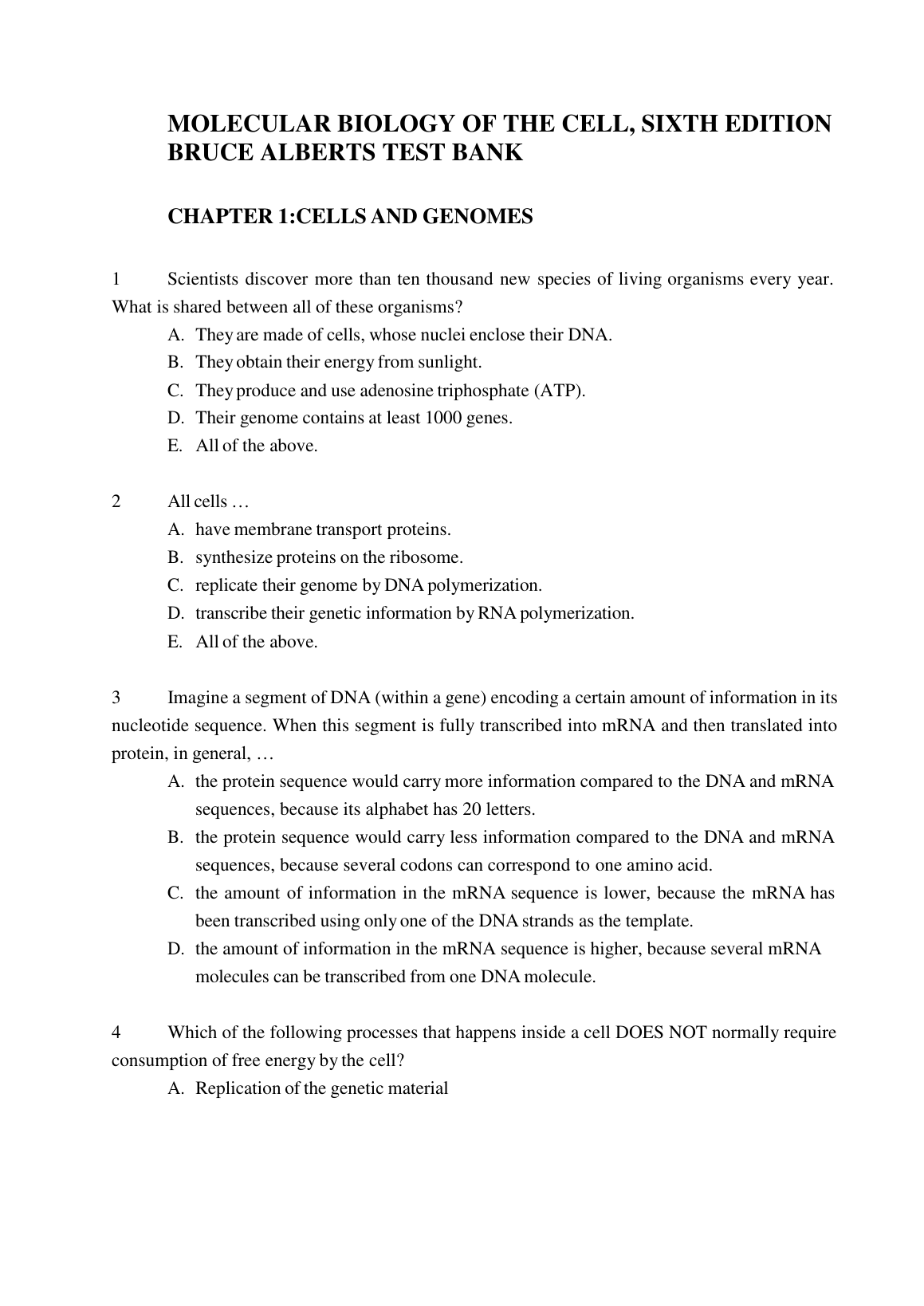 TEST BANK MOLECULAR BIOLOGY OF THE CELL, SIXTH EDITION BRUCE ALBERTS Test Bank Questions with Complete Solutions