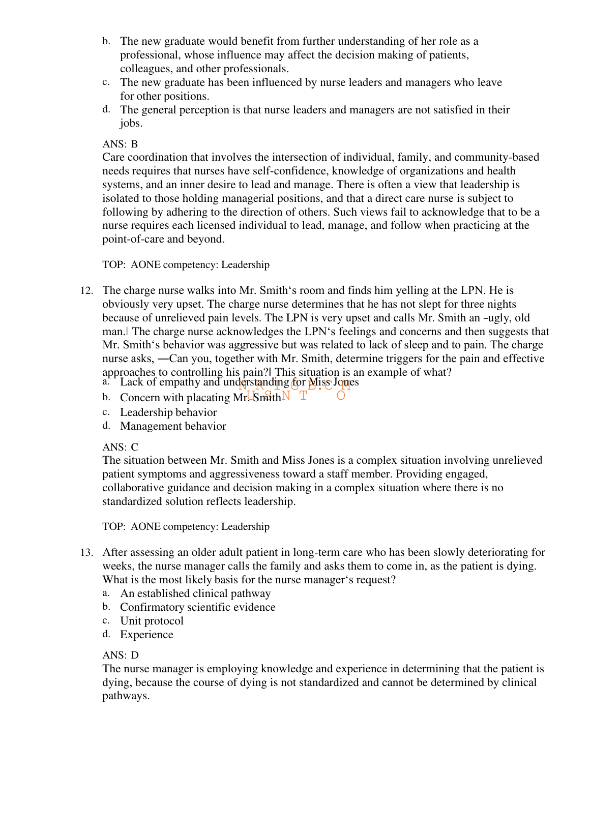 TEST BANKFOR YODERWISE‘S LEADING AND MANAGING IN CANADIAN NURSING7TH EDITION BY YODER-WISE