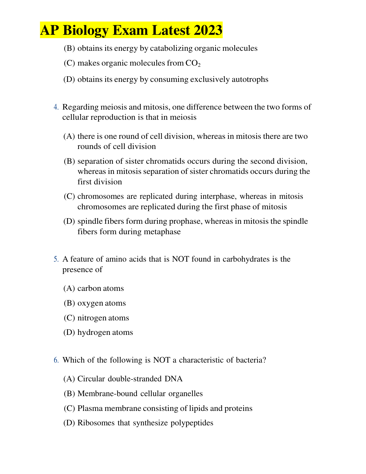 AP Biology Exam Latest 2023 EXAM REVIEW WITH SOLUTIONS GUARANTEED PASS QUESTUION BANK. DOWNLOAD on www.hackedexams.com INSTANTLY.