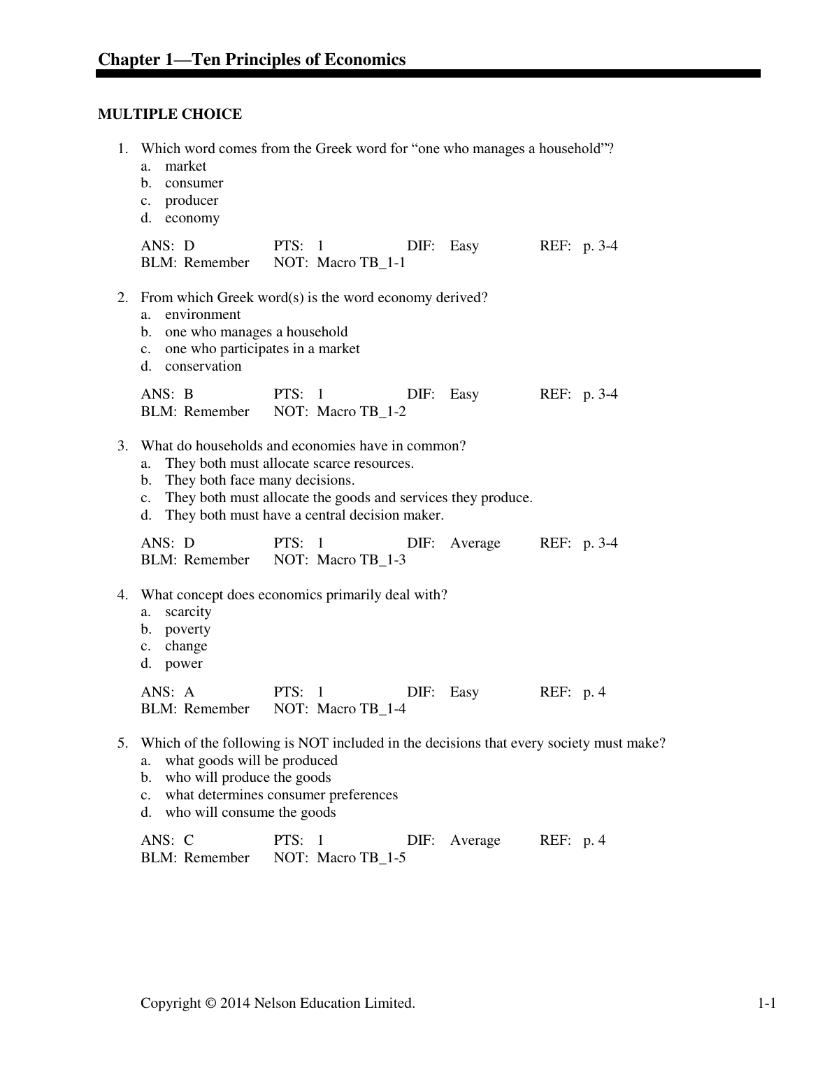 NETA Assessment: Test Bank to accompany Principles of Macroeconomics, Sixth Canadian Edition By N. Gregory Mankiw / Ronald D. Kneebone / Kenneth J. McKenzie