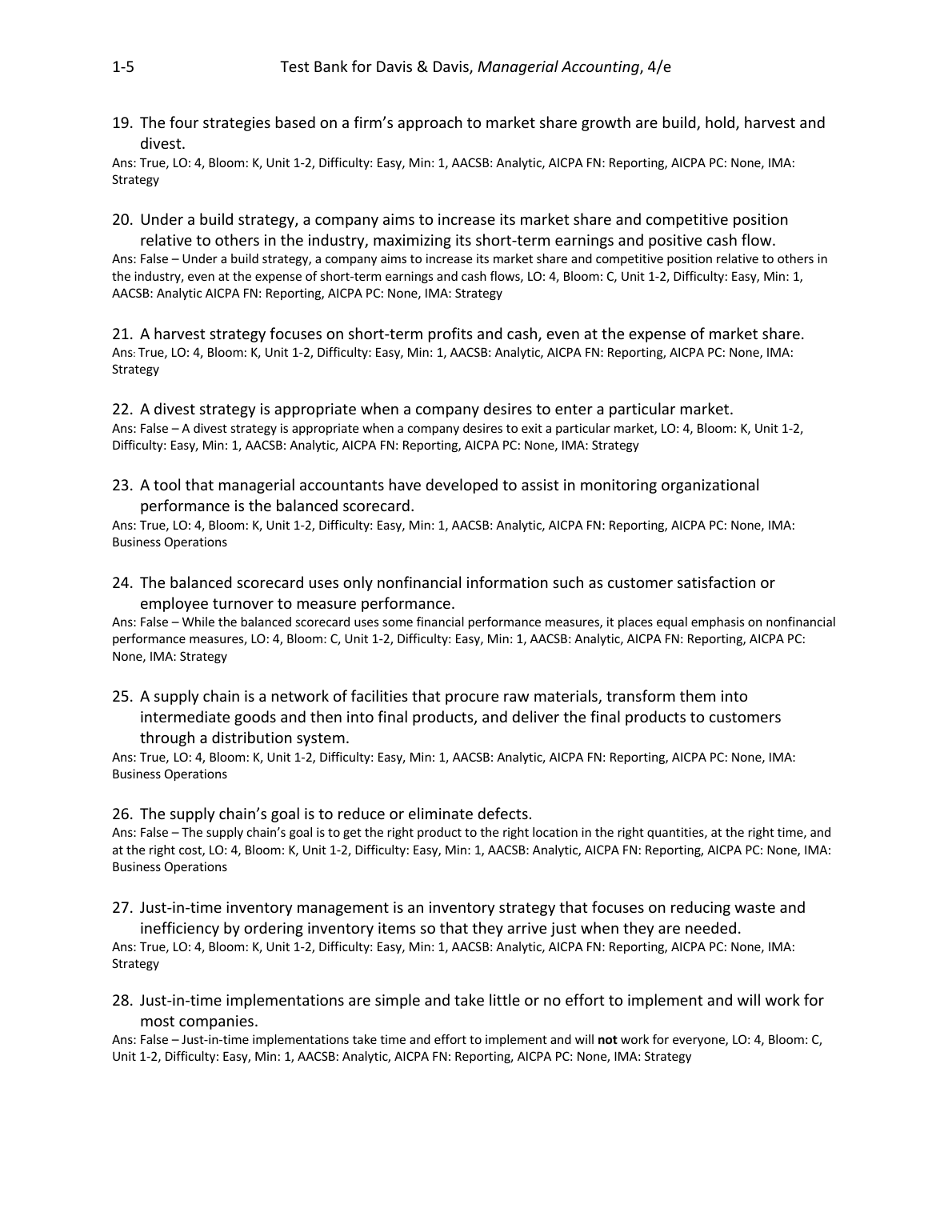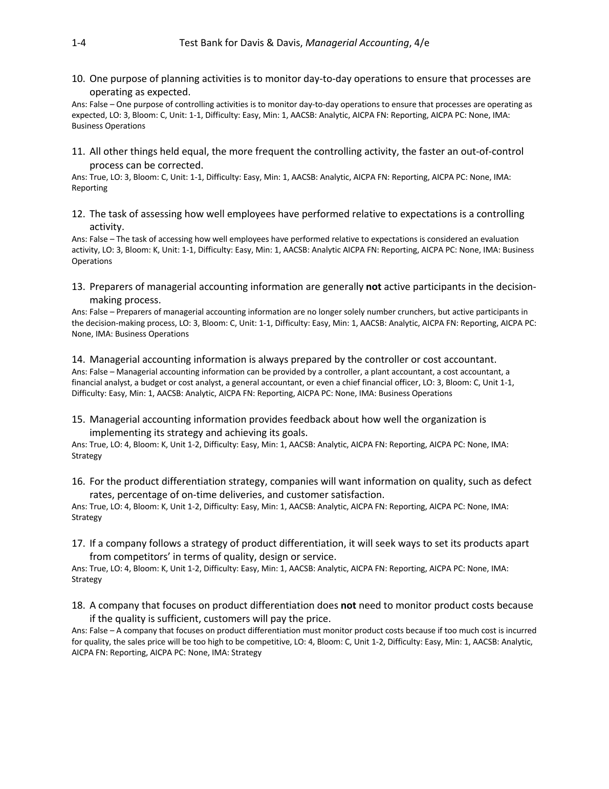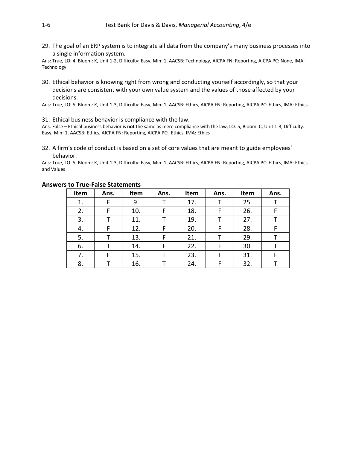 Test Bank for Davis & Davis, Managerial Accounting, 4/e. DOWNLOAD on www.hackedexams.com INSTANTLY.