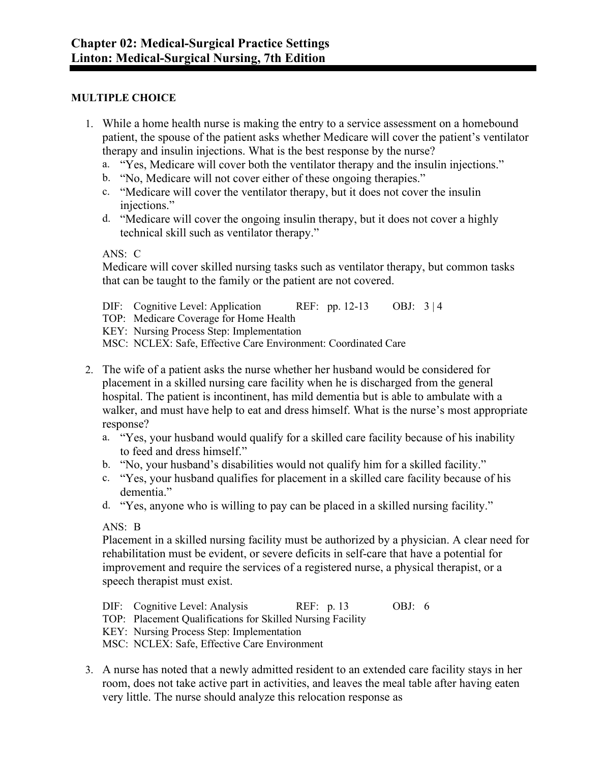 Test Bank for Medical Surgical Nursing 7th Edition by Linton All chapters Included