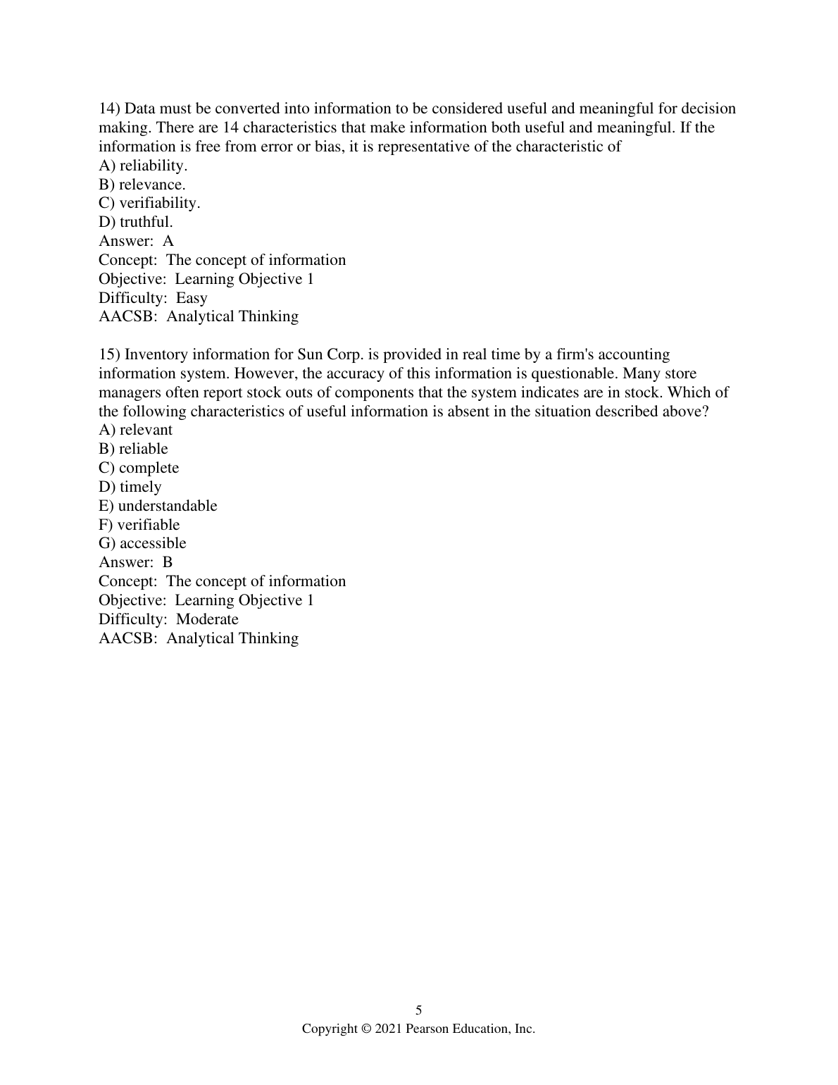 Accounting Information Systems, 15e (Romney) (Test Bank All Chapters)