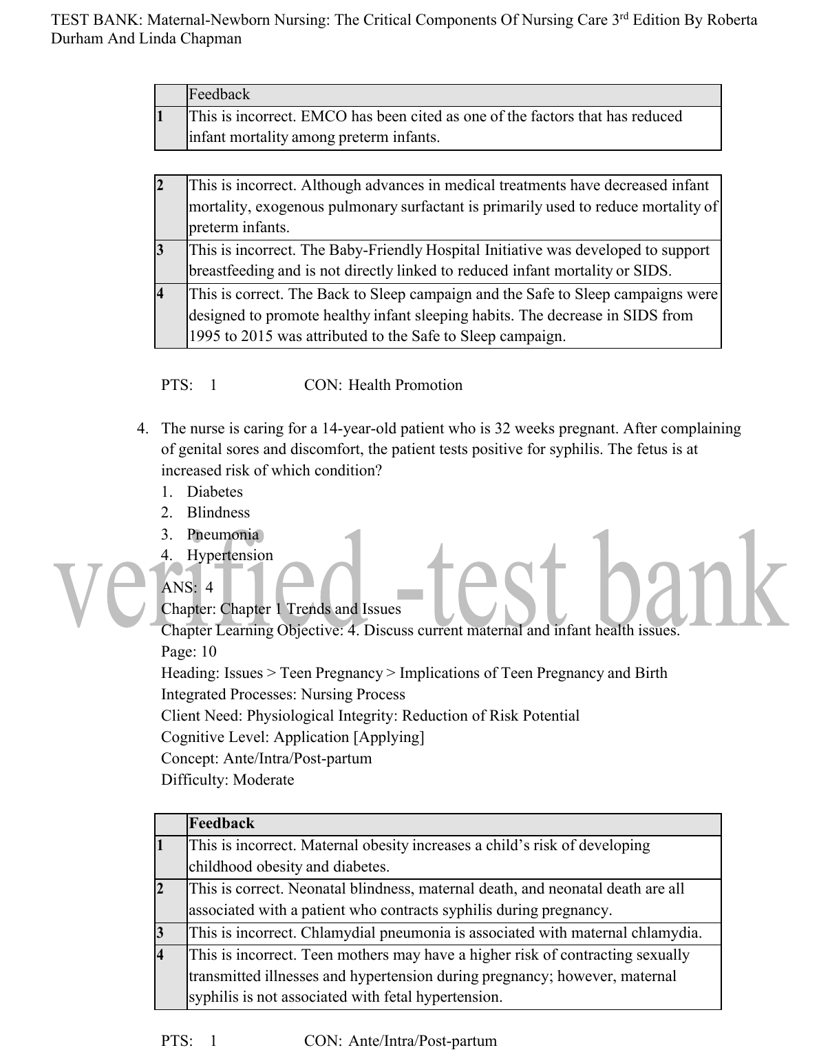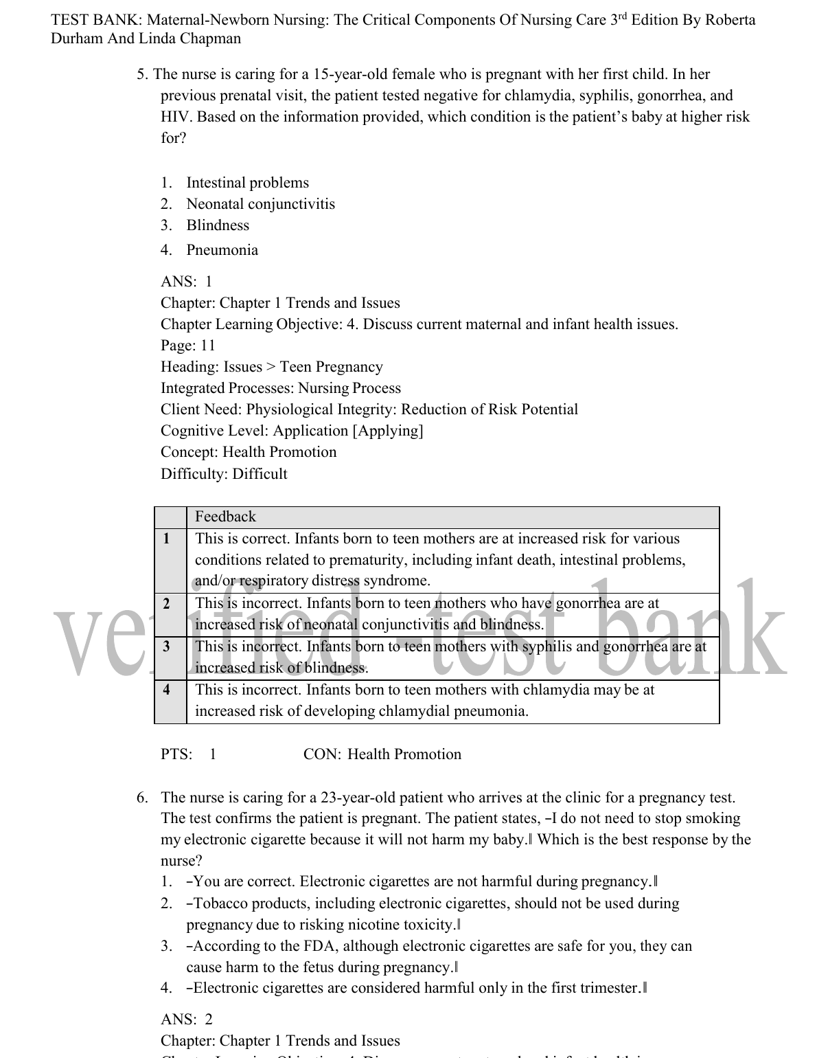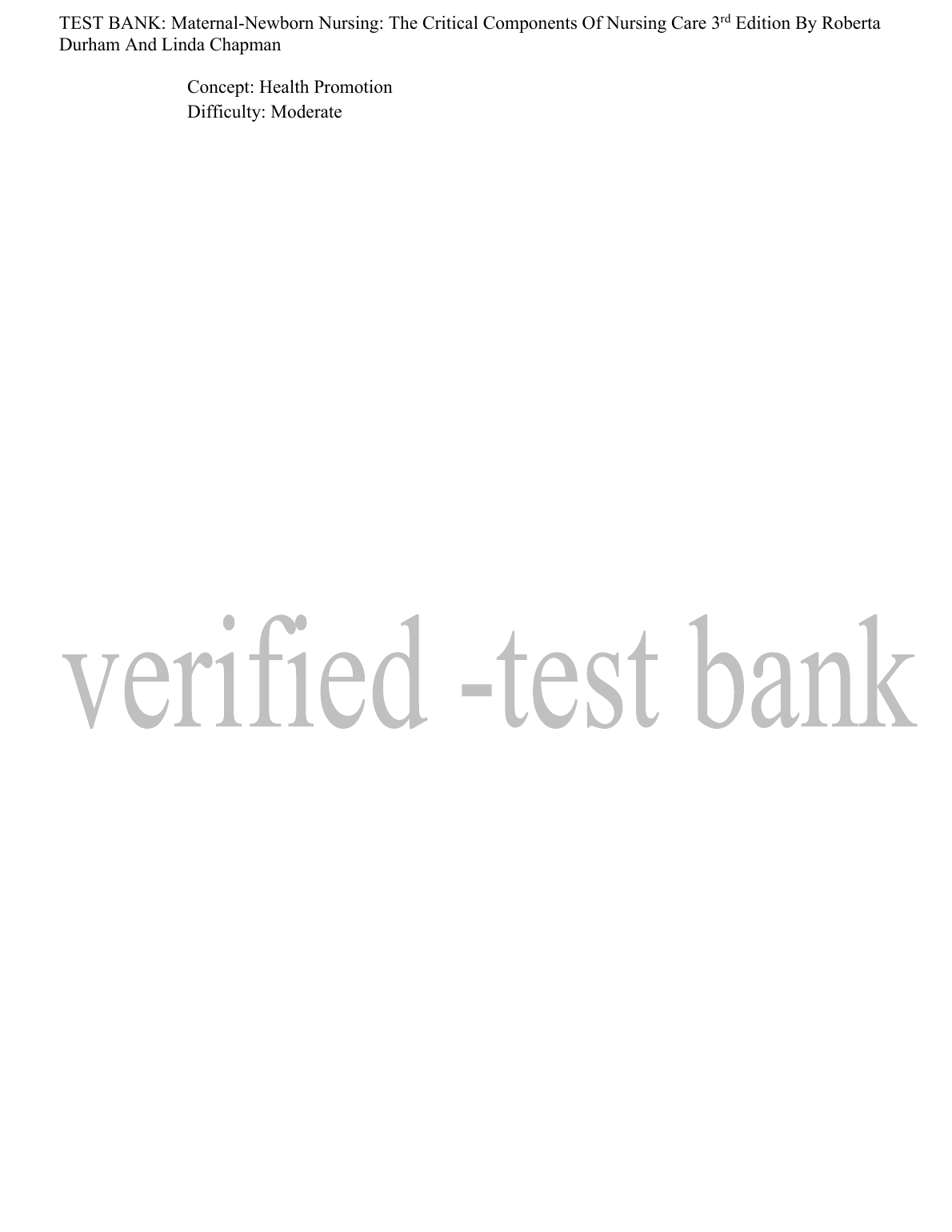 TEST BANK MATERNAL-NEWBORN NURSING: THE CRITICAL COMPONENTS OF NURSING CARE 3RD EDITION BY LINDA CHAPMAN AND ROBERTA DURHAM