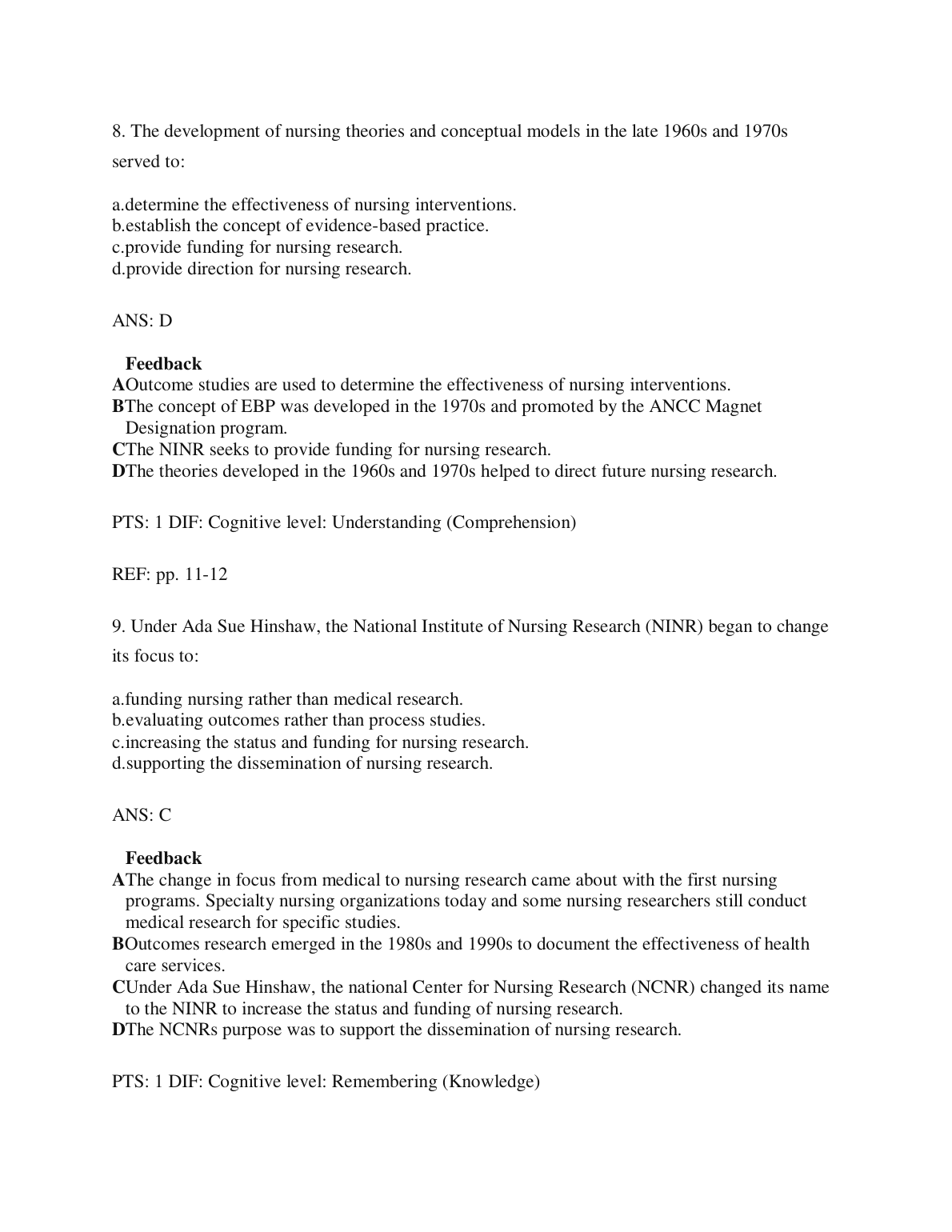 Burns and Grove's The Practice of Nursing Research Appraisal, Synthesis, and Generation of Evidence 8th Edition Test Bank