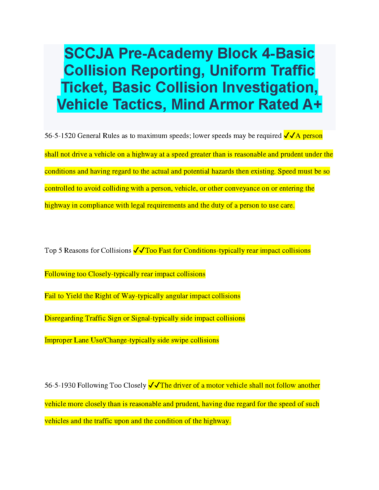 Master the essentials of collision reporting, traffic tickets, collision investigation, vehicle tactics, and defensive driving techniques with this comprehensive guide. Designed for success on your first attempt, this resource covers key concepts and strategies to help you ace your exams and avoid resits. Prepare thoroughly for the SCCJA Pre-Academy Block 4 exam with this detailed study material.