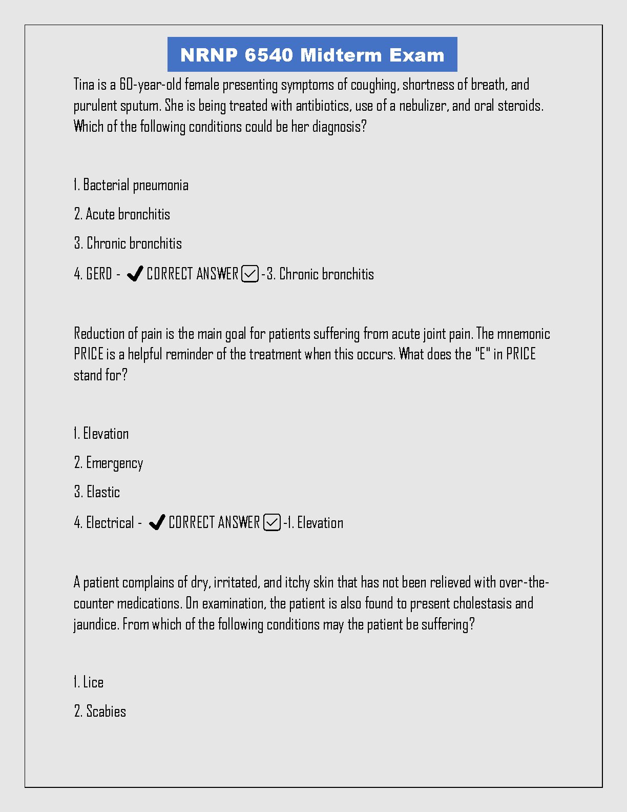 NRNP 6540 Week 6 Midterm Exam (All Correct) - 2024/2025 Edition by [Author Name(s)]