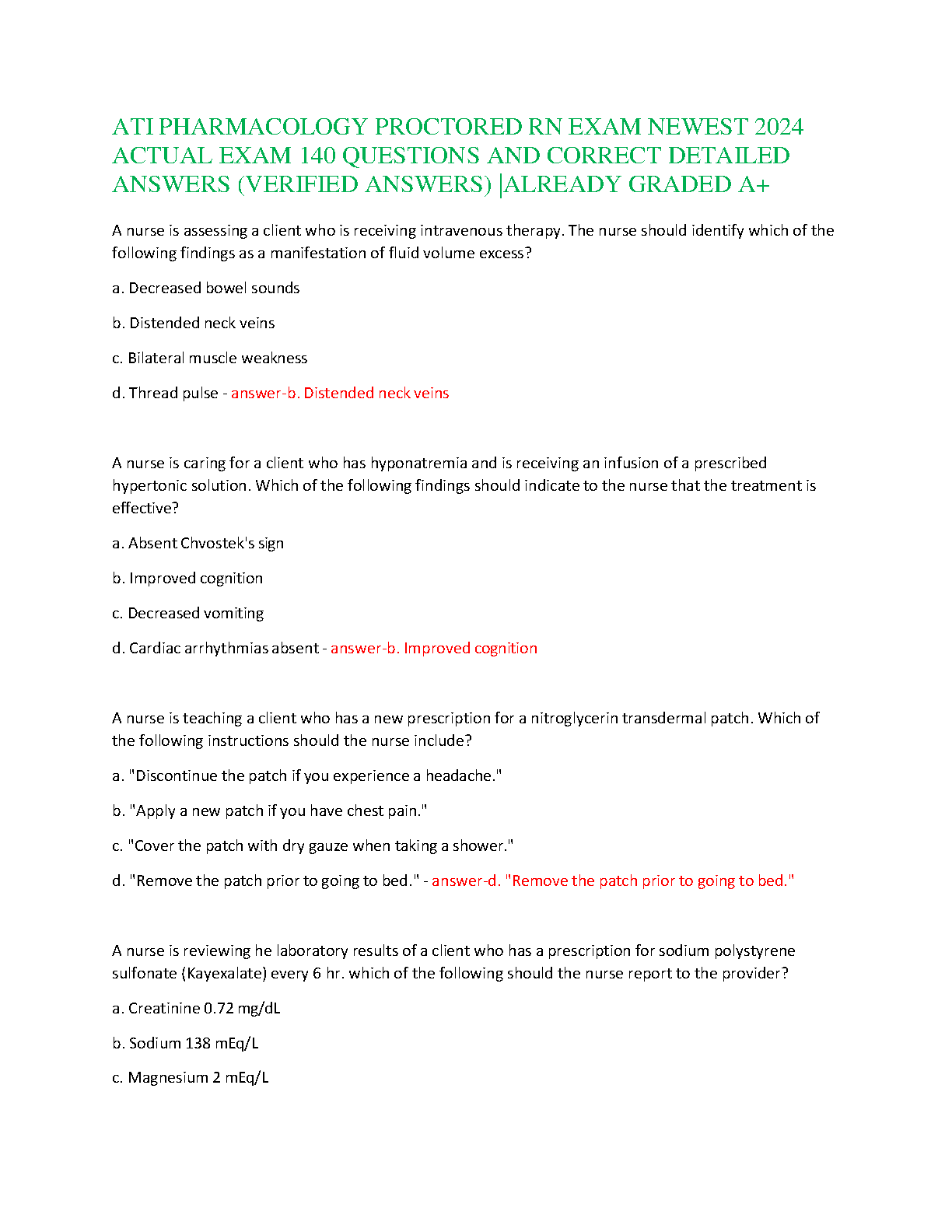 Ace your ATI Pharmacology RN exam with this comprehensive study guide. This resource contains 140 verified questions and answers, already graded A+, covering key concepts to help you pass on your first try and avoid resits. Prepare effectively for the 2024/2025 academic year.