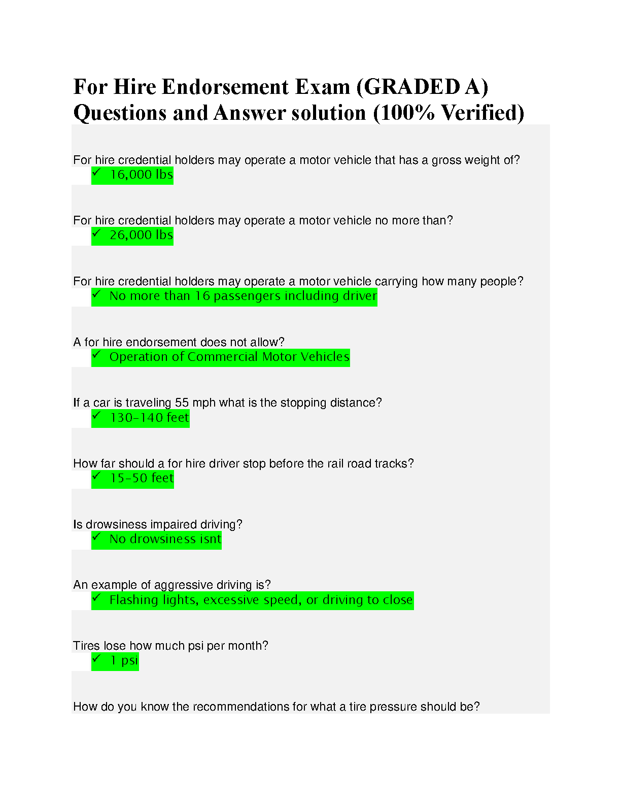 For Hire Endorsement Exam Questions and Answers Solution (Graded A) - 2024/2025 Edition