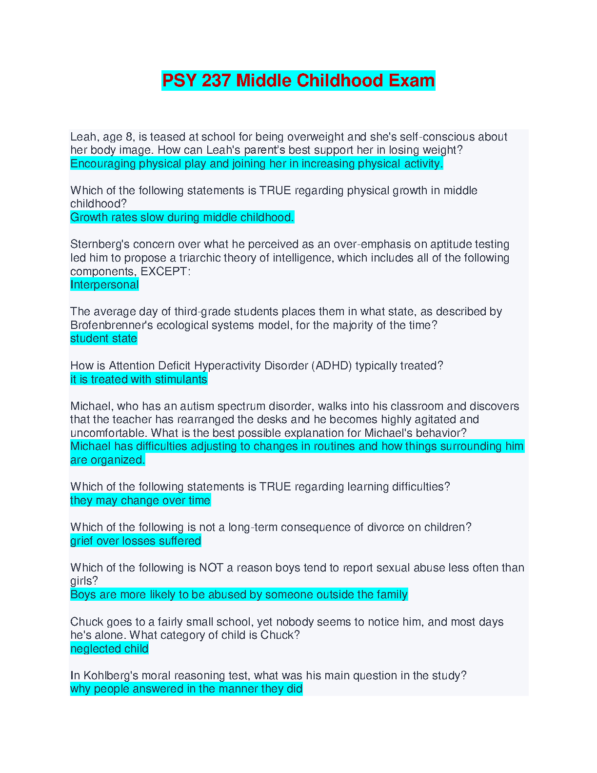 This comprehensive guide covers all aspects of the PSY 237 Middle Childhood Exam, designed to help students pass their exams on the first try and avoid resits. It includes key concepts, practice questions, and strategies for success in the 2024-2025 academic year.