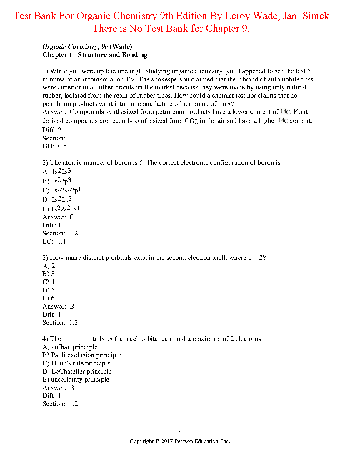 Organic Chemistry 9th Edition Test Bank by Leroy Wade and Jan Simek