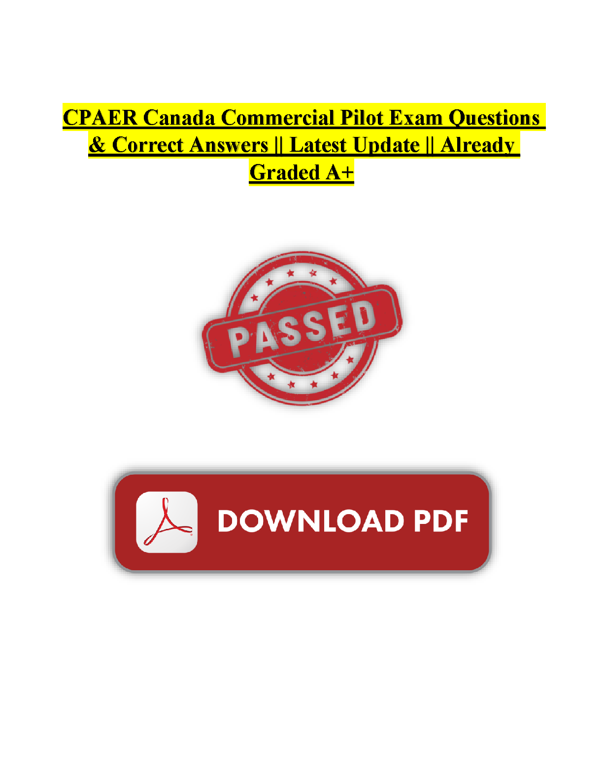 Ace your CPAER Canada Commercial Pilot exam with this comprehensive study guide. Our updated 2024/2025 resource includes accurate questions and answers, already graded A+, ensuring you pass on your first try and avoid costly resits. Download now and start your journey to success!