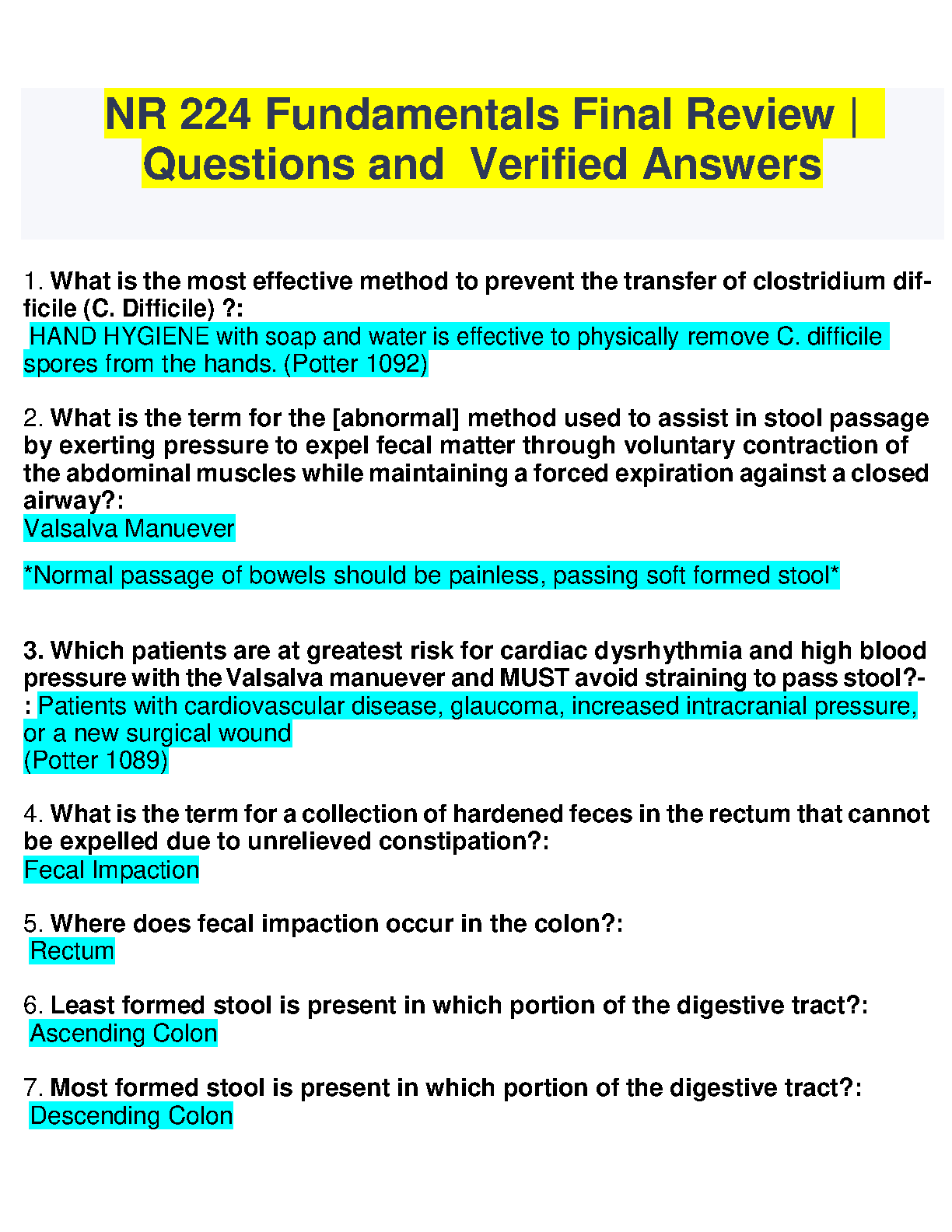 NR 224 Fundamentals Final Review: Questions and Verified Answers - 2024/2025 Edition