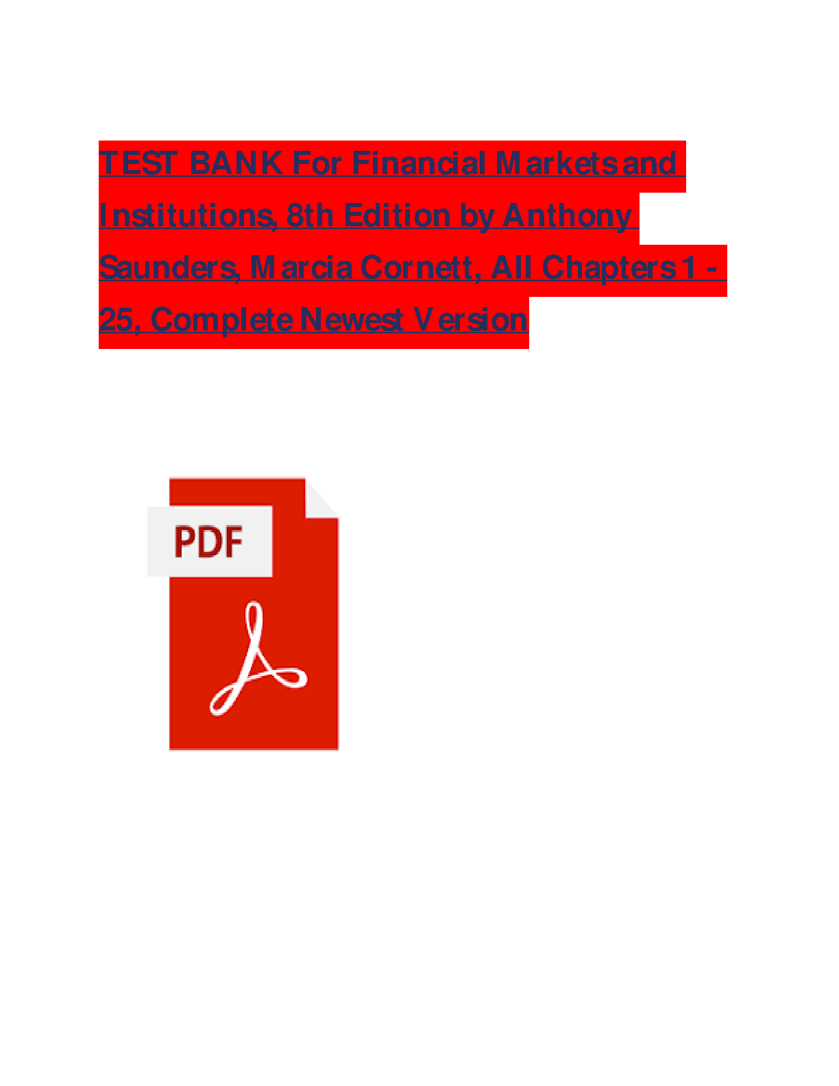 Financial Markets and Institutions, 8th Edition Test Bank by Anthony Saunders and Marcia Cornett: Complete Solutions for Chapters 1-25