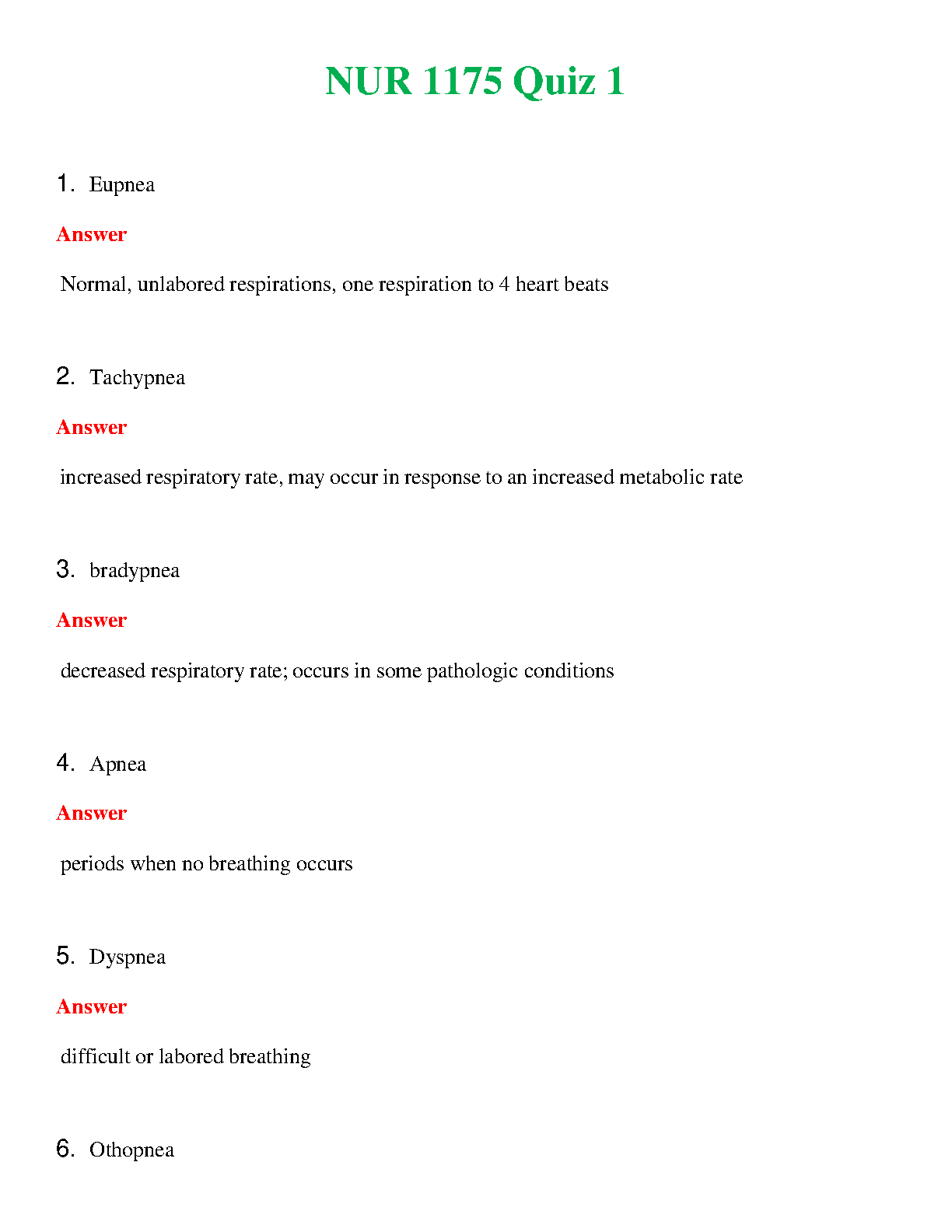 NUR 1175 Quiz 1: Respiratory Patterns and Definitions