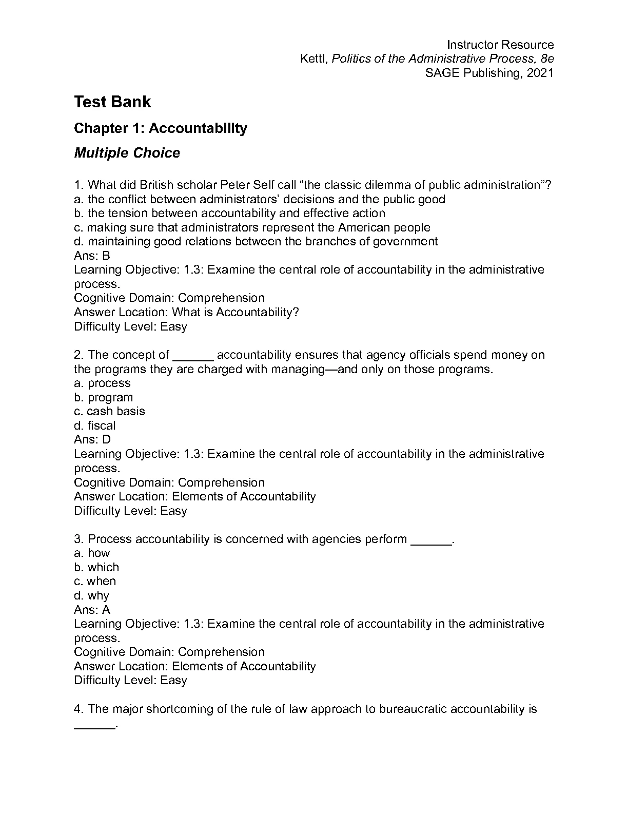 Ace your exams with this comprehensive test bank for Kettl's Politics of the Administrative Process, 8th edition. This resource provides multiple-choice questions covering key concepts, ensuring a thorough understanding and helping students avoid resits. Ideal for 2024/2025 academic year.
