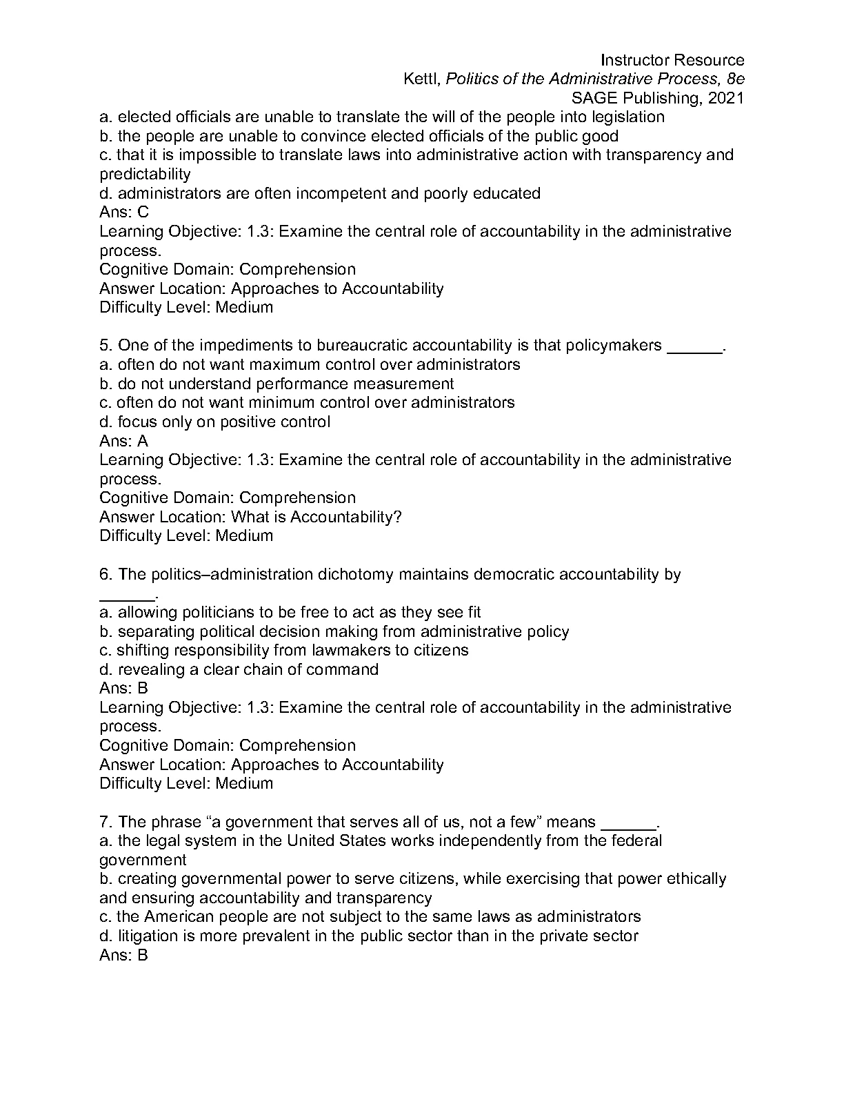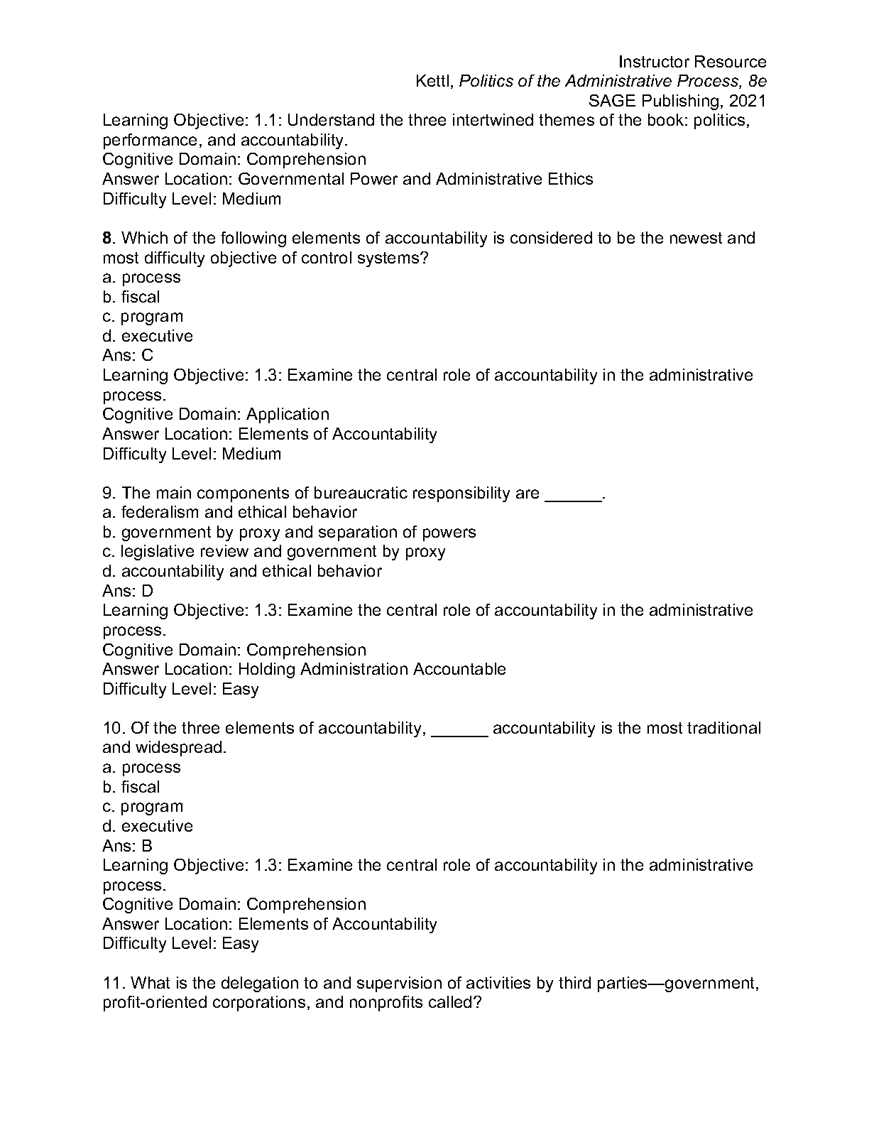 Kettl's Politics of the Administrative Process, 8th Edition Test Bank: Multiple Choice Questions and Answers