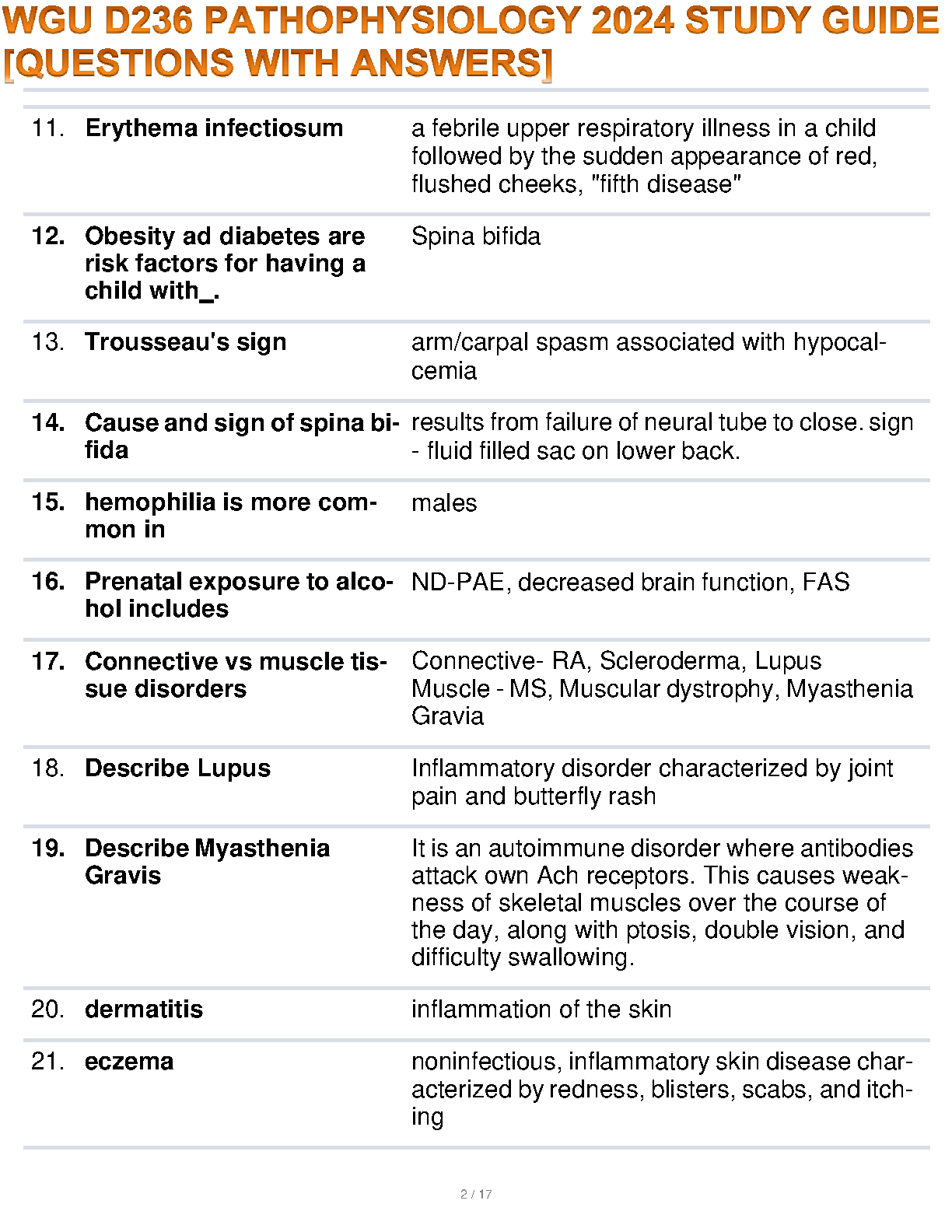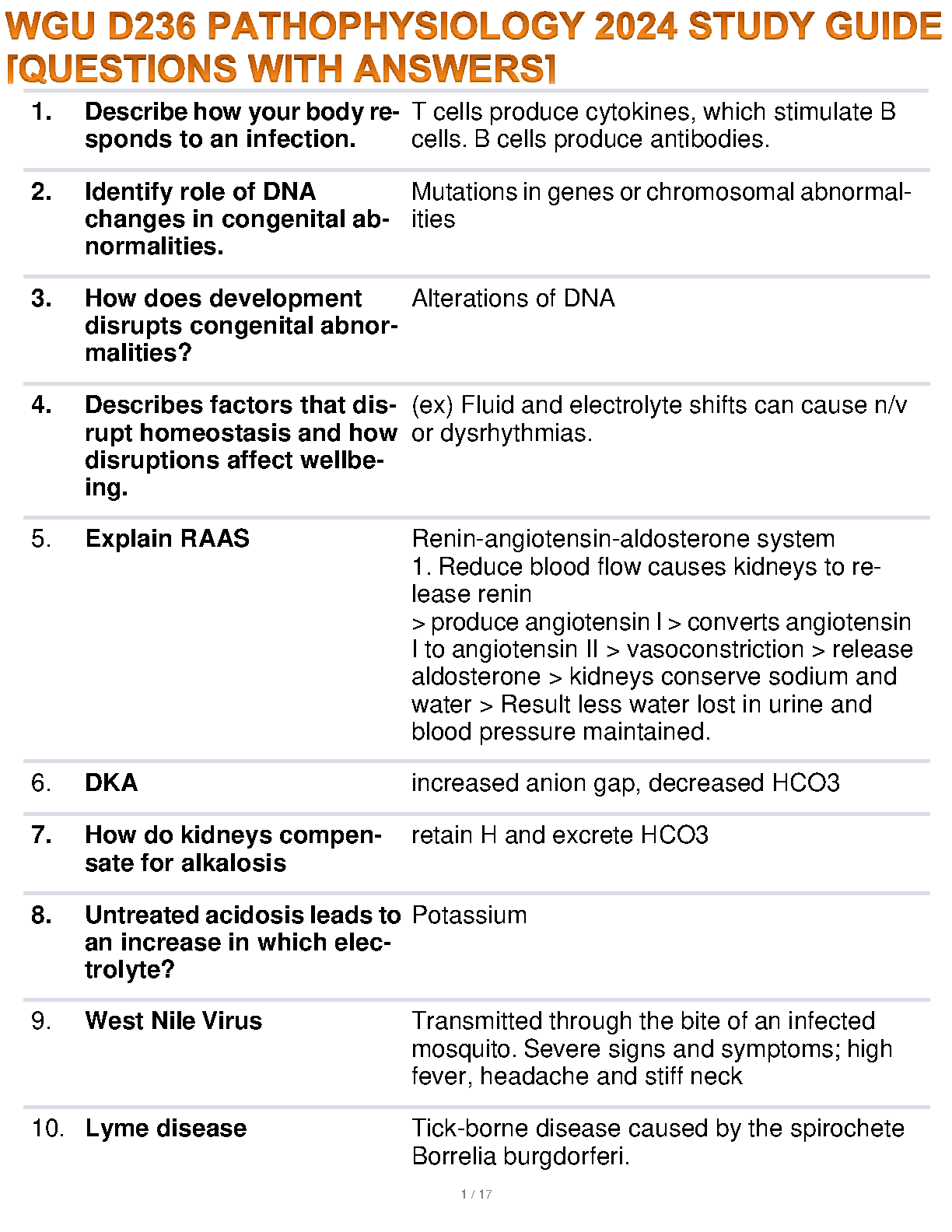 Ace your WGU D236 Pathophysiology exam with this comprehensive 2024 study guide. This resource provides questions and answers covering key concepts, ensuring first-attempt success and avoiding resits. Prepare effectively for topics like the renin-angiotensin-aldosterone system (RAAS), electrolyte imbalances, and infectious diseases.