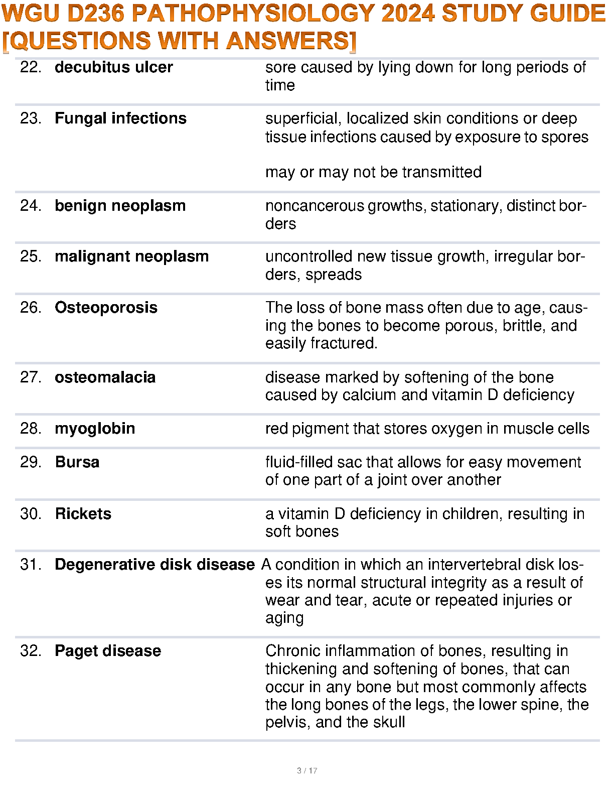 WGU D236 Pathophysiology 2024 Study Guide: Questions and Answers