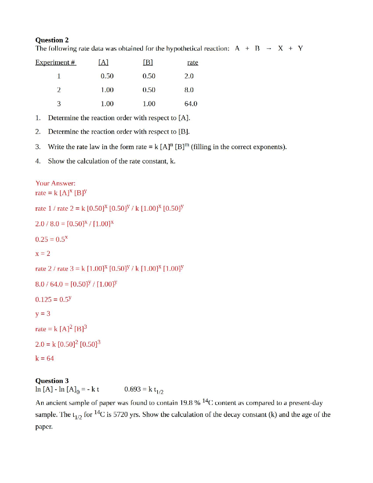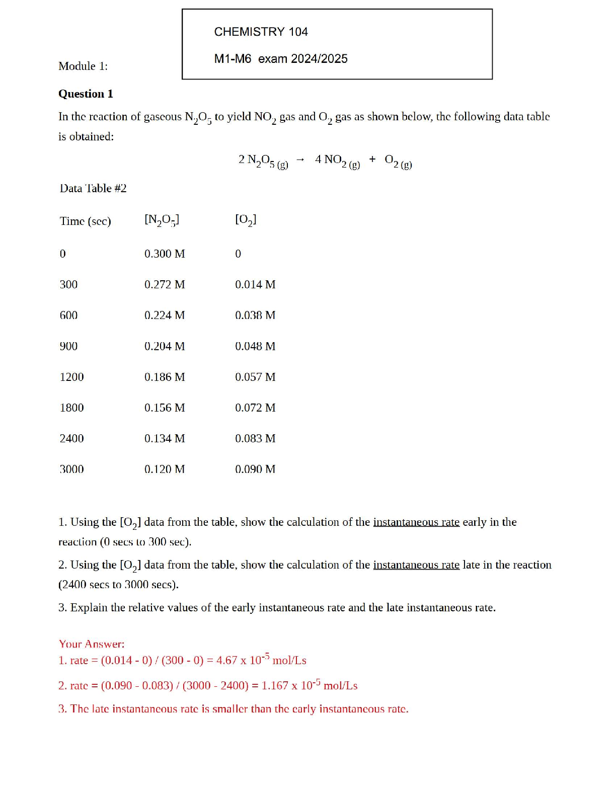 Chemistry 104 M1-M6 Exam 2024/2025: Instantaneous Rate Calculations