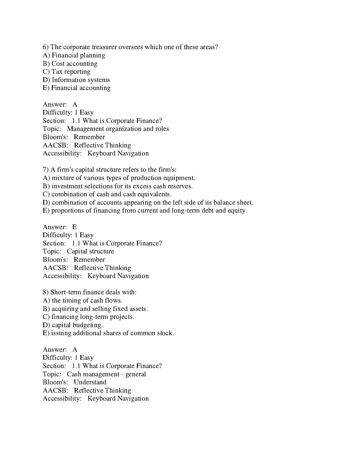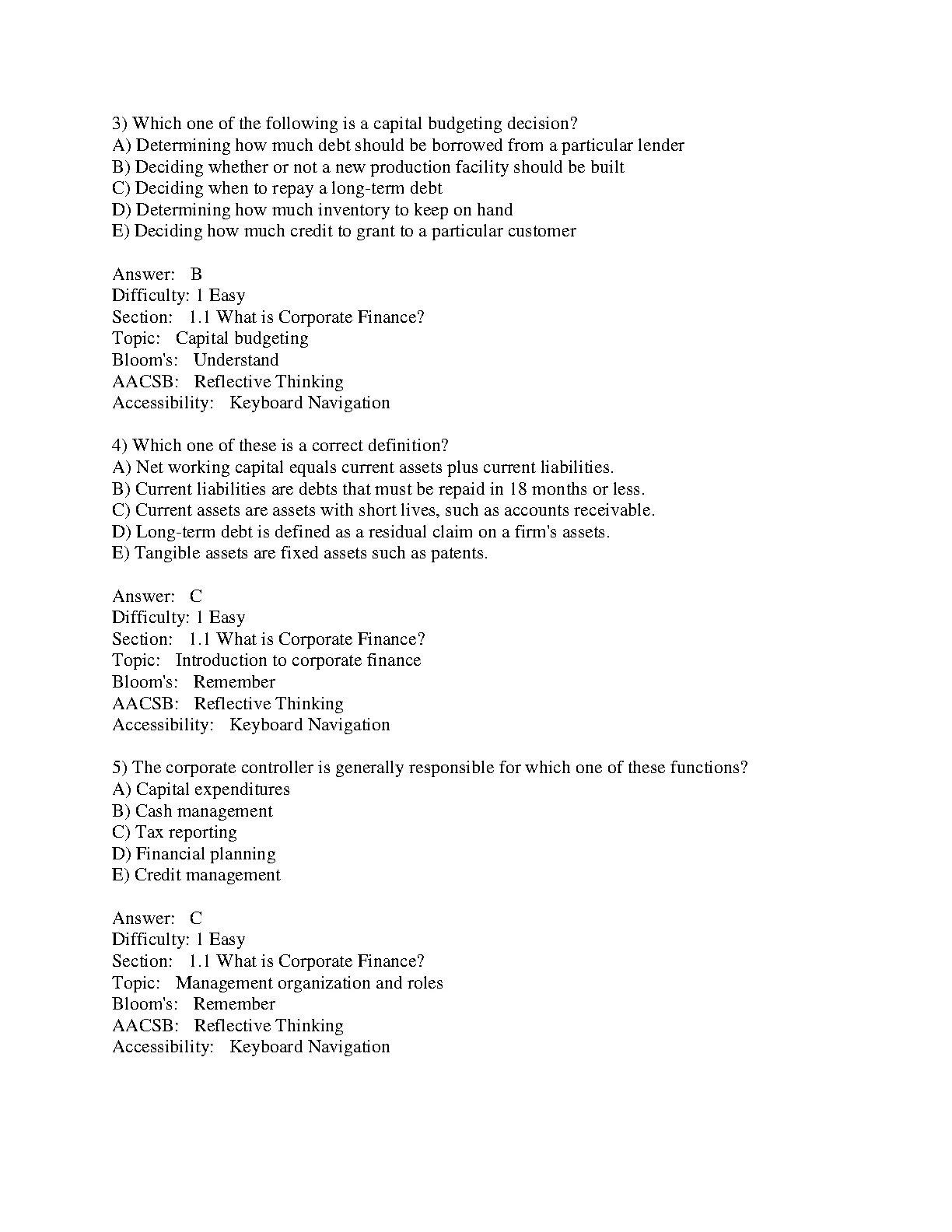 Ace your Corporate Finance exams with this comprehensive test bank for the 12th edition by Stephen Ross, Randolph Westerfield, and Jeffrey Jaffe. This resource is designed to help students master the key concepts and achieve exam success on their first attempt.
