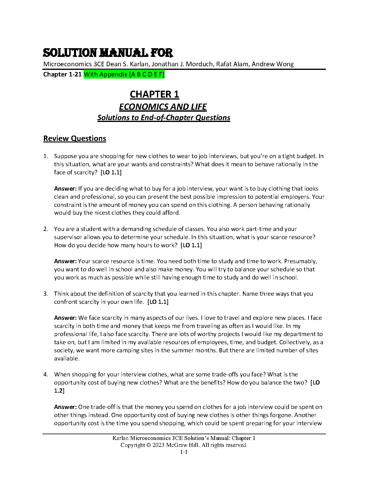 Microeconomics 3CE Solution Manual: Chapter 1-21 by Dean S. Karlan, Jonathan J. Morduch, Rafat Alam, and Andrew Wong